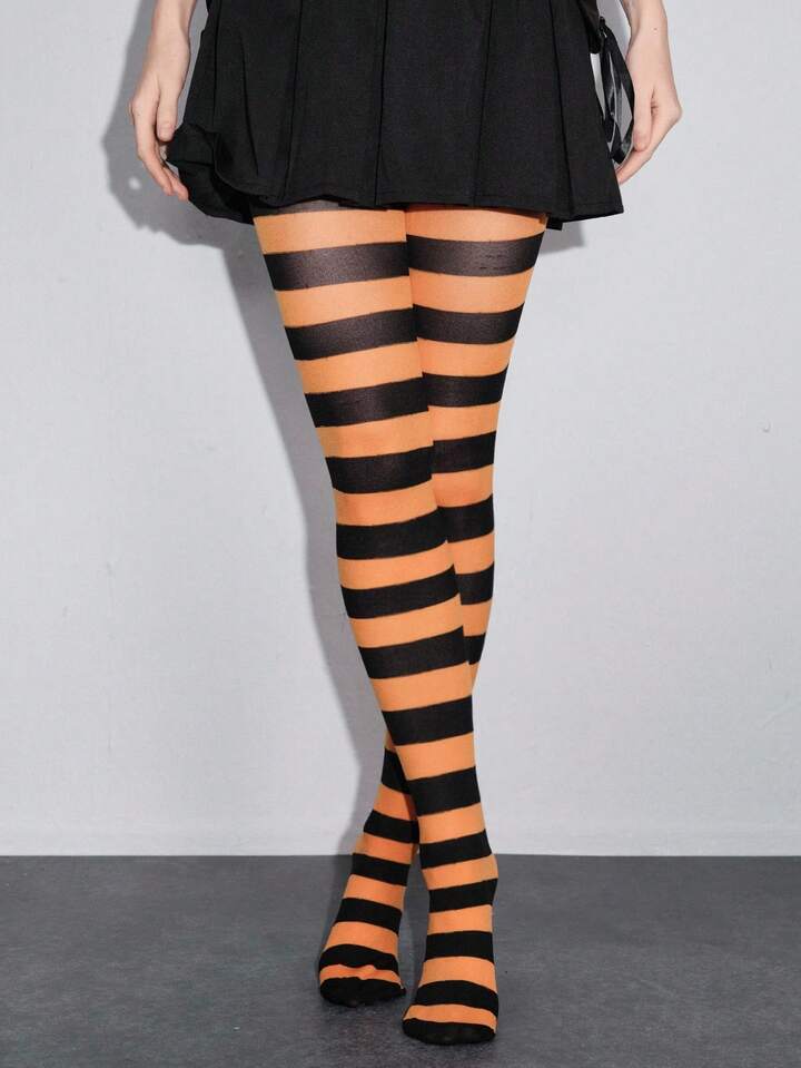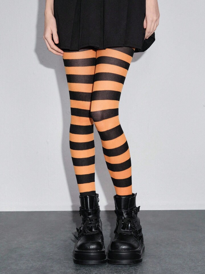 Grunge Punk 1 par de medias anchas a rayas naranjas y negras con estilo de roca oscura