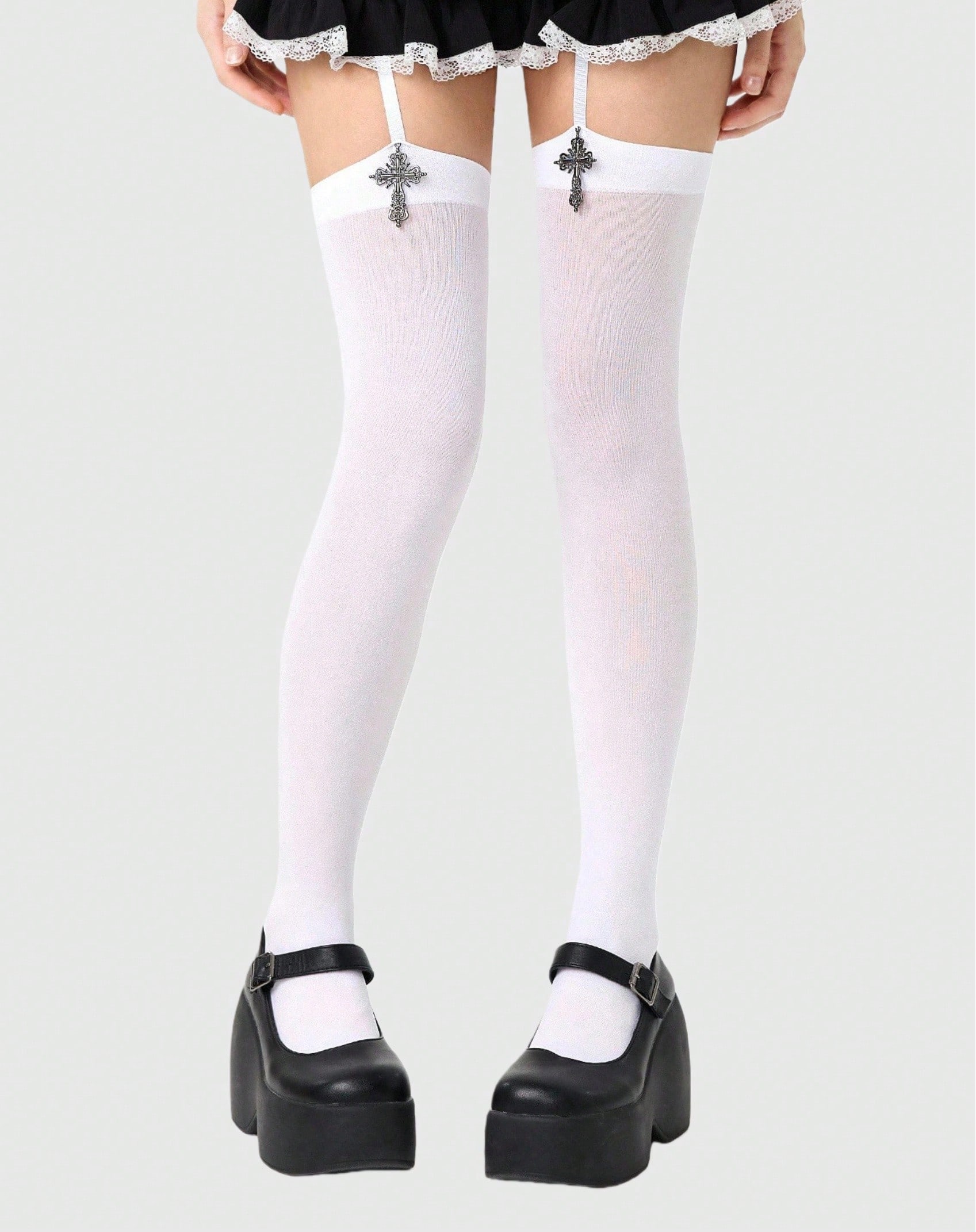 Grunge Punk 1 par de medias de suspensor con patrón oscuro gótico, medias de mujer elegantes y sexys