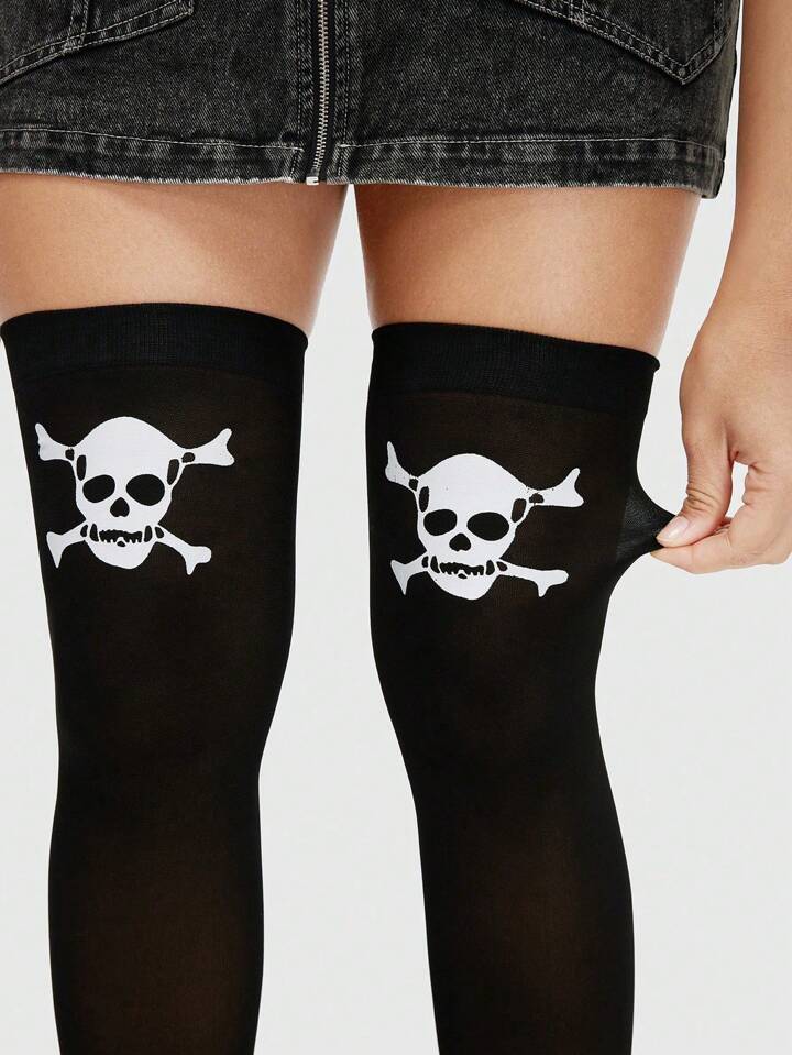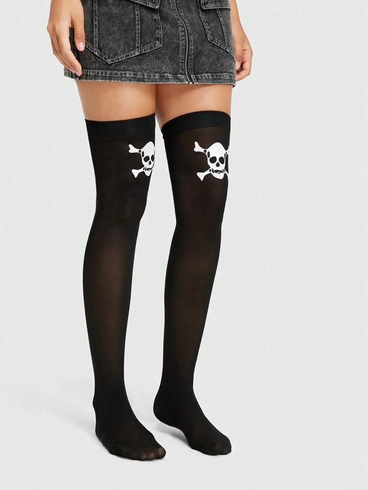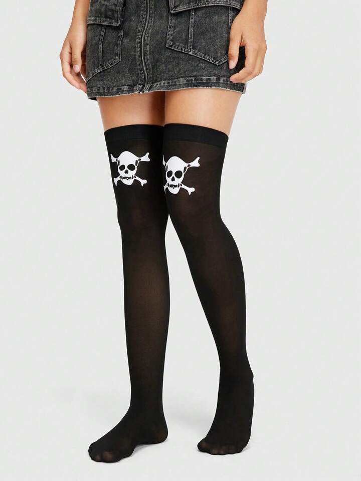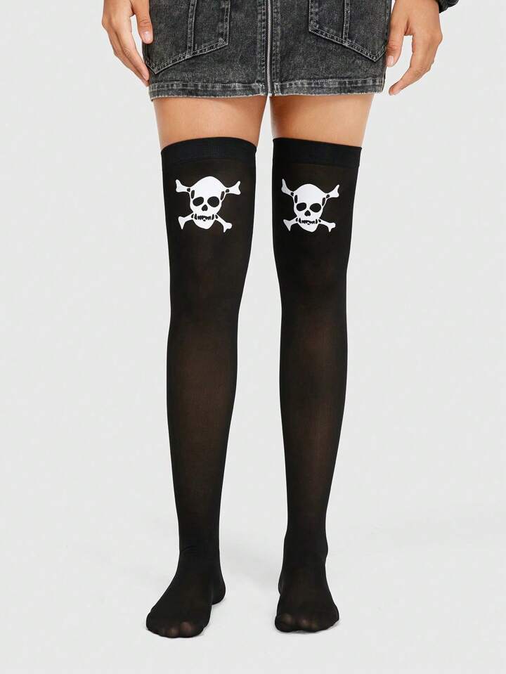 Grunge Punk 1 par de medias por encima de la rodilla de estilo gótico rock inspiradas en el cráneo blanco y negro