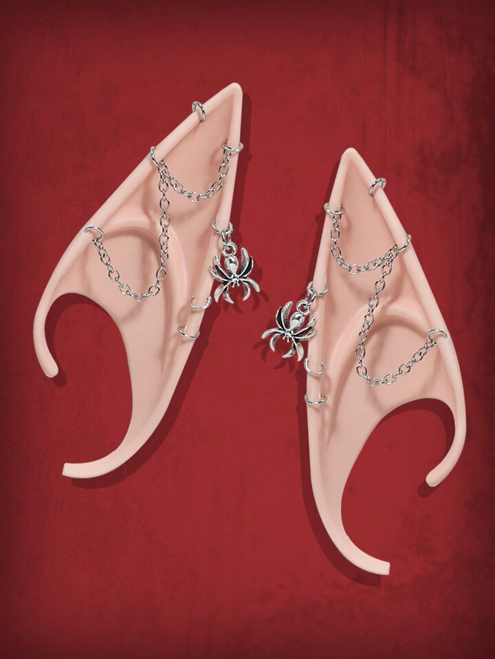 Grunge Punk 1 par de pendientes con cadena de arañas góticas accesorios de disfraz para cosplay