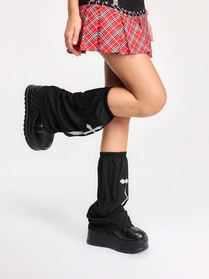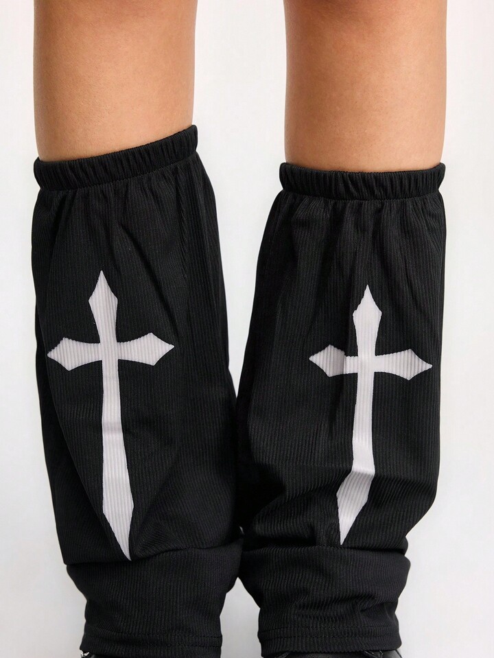 Grunge Punk 1 par de calentadores de piernas cálidos para mujer con patrón de cruz negra