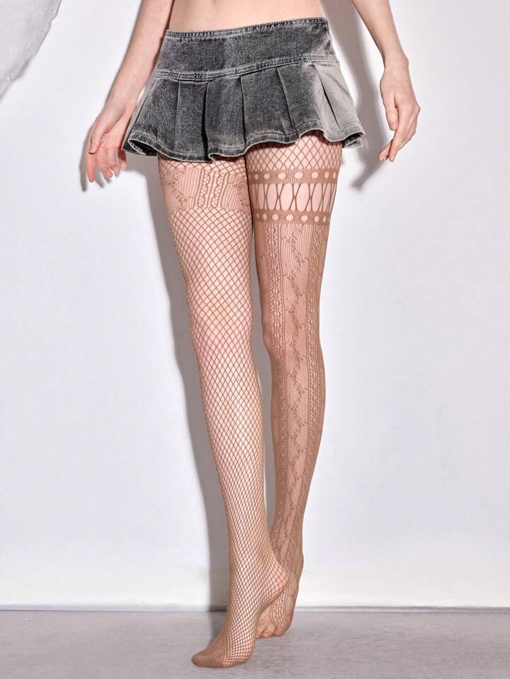 Grunge Punk 1 par de medias de red ombré sexy para mujeres, versátiles para uso casual/fresco