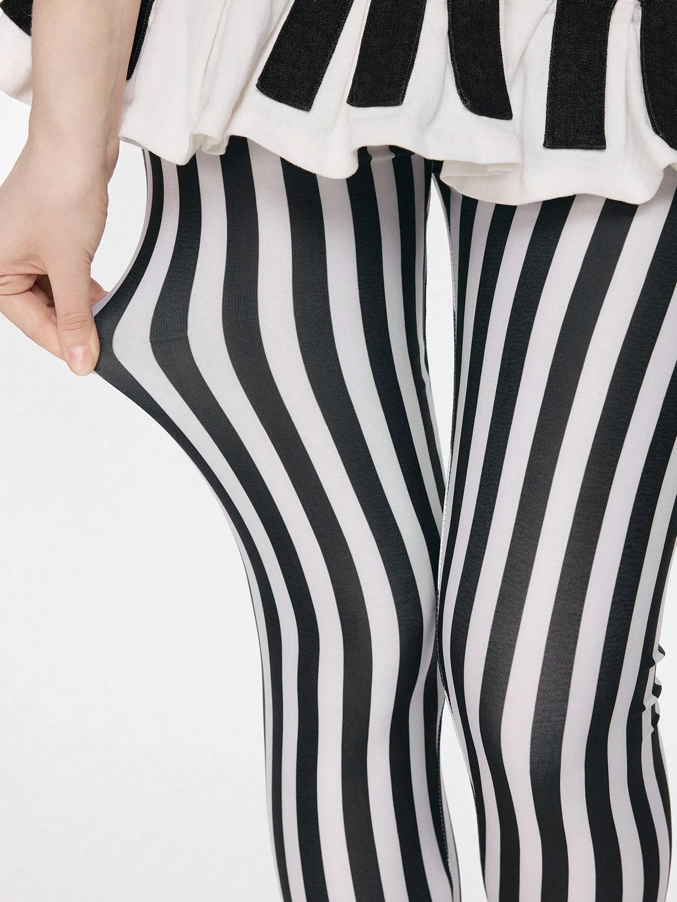 Grunge Punk 1 pieza de pantimedia con estampado de rayas verticales de estilo punk, leggings en blanco y negro de estilo Y2K, medias elásticas de malla ultra fina y transpirable, versátil para todo el año, clásicas y sexys