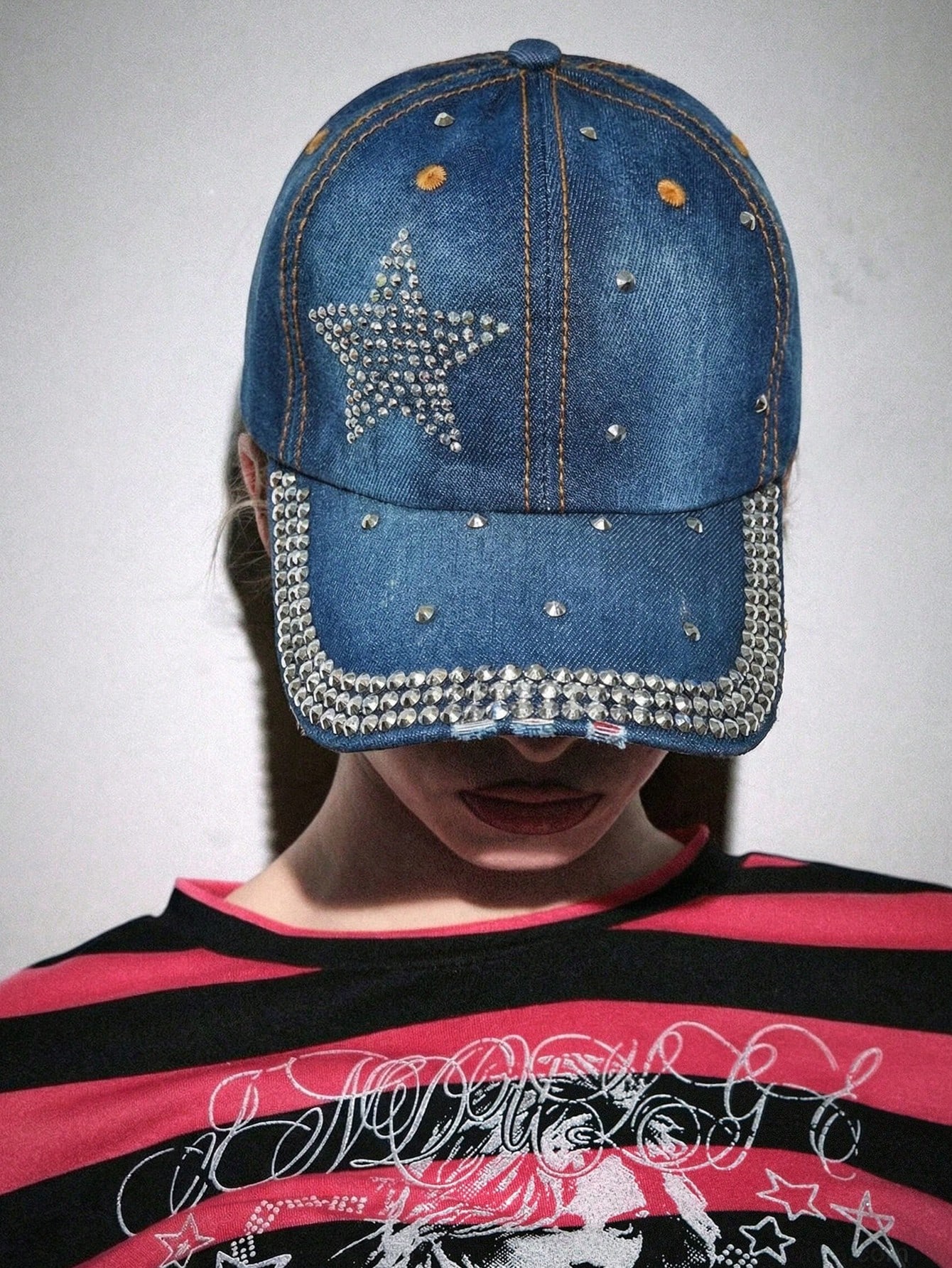 Grunge Punk 1 Gorra con remache de rhinestone, gorra de béisbol casual de primavera con diamante lateral en forma de estrella de cinco puntas, adecuada para uso diario, fiesta, festival de música