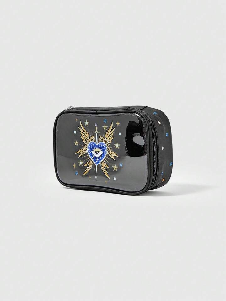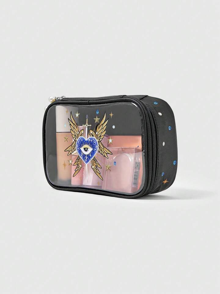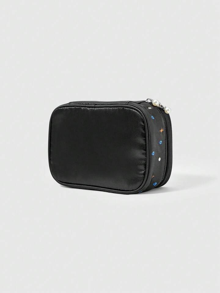 Grunge Punk Bolsa de cosméticos/maquillaje portatil de satén con estampado y perlas