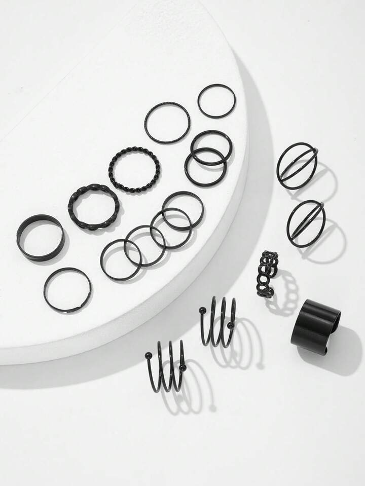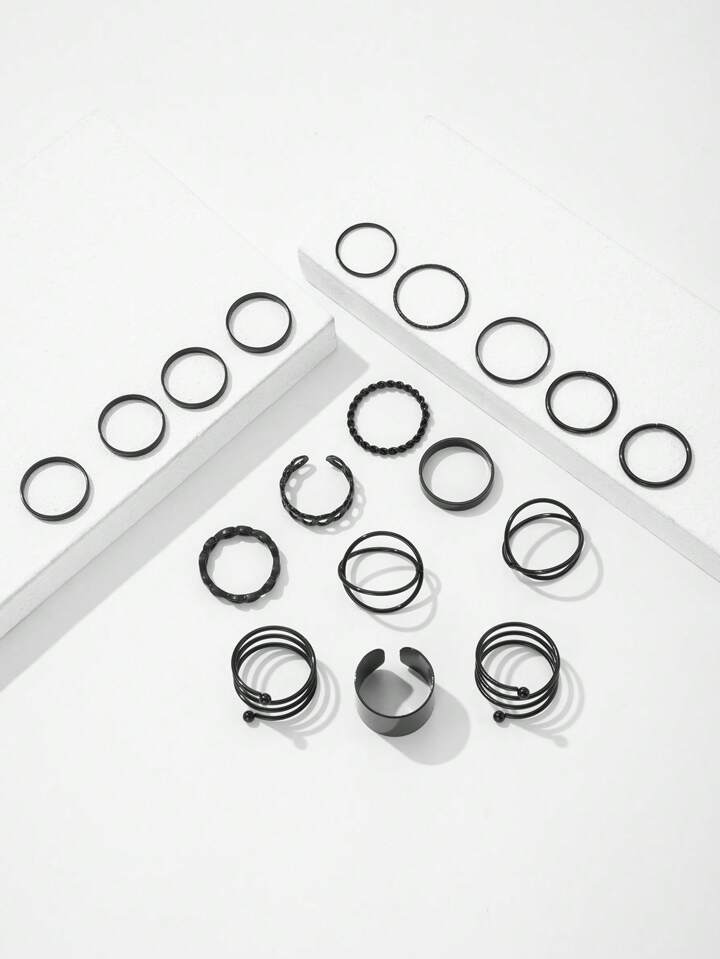 Grunge Punk Set de 18 anillos de aleación de estilo gótico oscuro minimalista, regalo para mujeres, Halloween