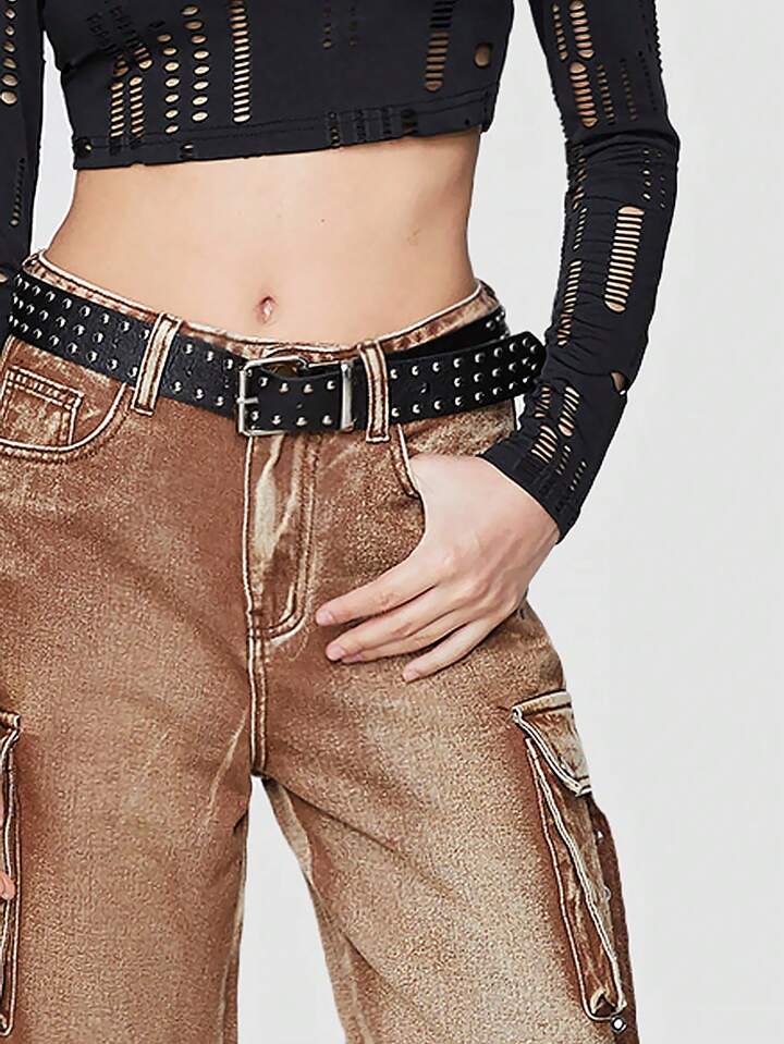 Grunge Punk 1 Pieza Cinturón Femenino Negro Con Detalles De Tachuelas, Resistente Correa De Estilo Punk Versátil Para Uso Diario
