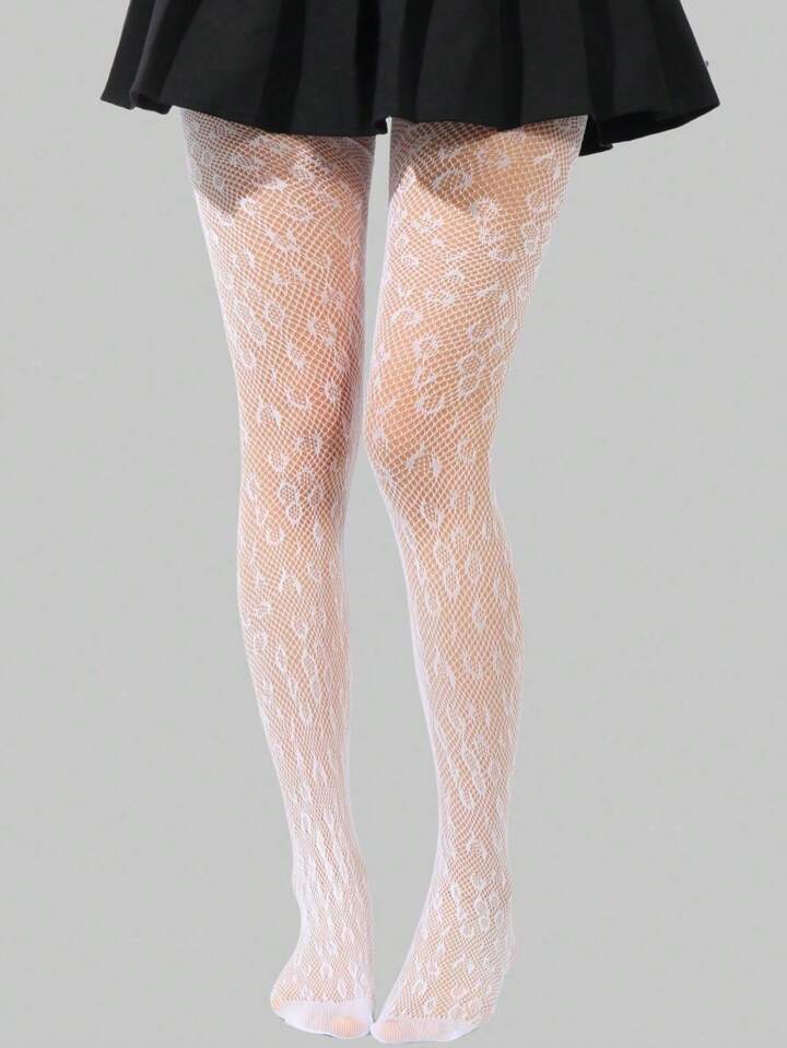 Grunge Punk 1 par de medias de rejilla con estampado de leopardo blanco para mujer, para las cuatro estaciones