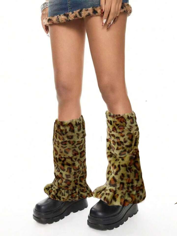 Grunge Punk 1 par de calentadores de piernas con estampado de leopardo, elegantes y cálidos para mujeres