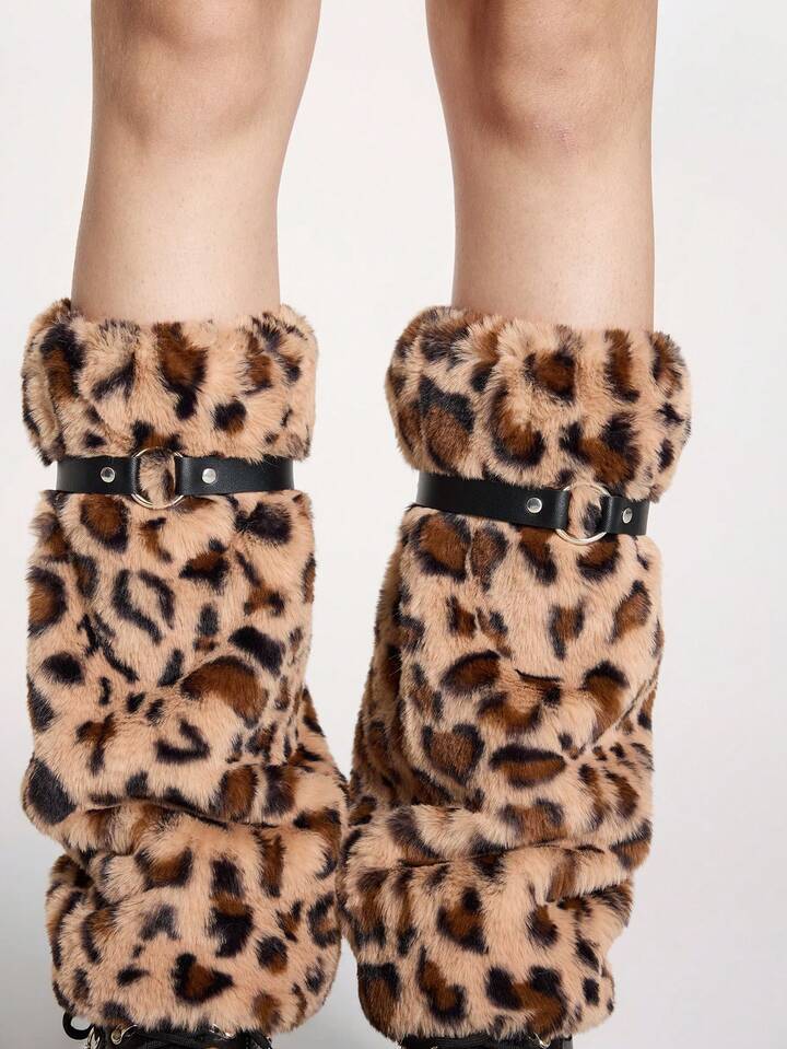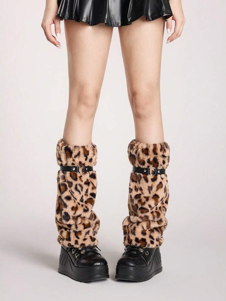 Grunge Punk 1 par de calentadores de piernas con estampado de leopardo, elegantes y cálidos para mujeres