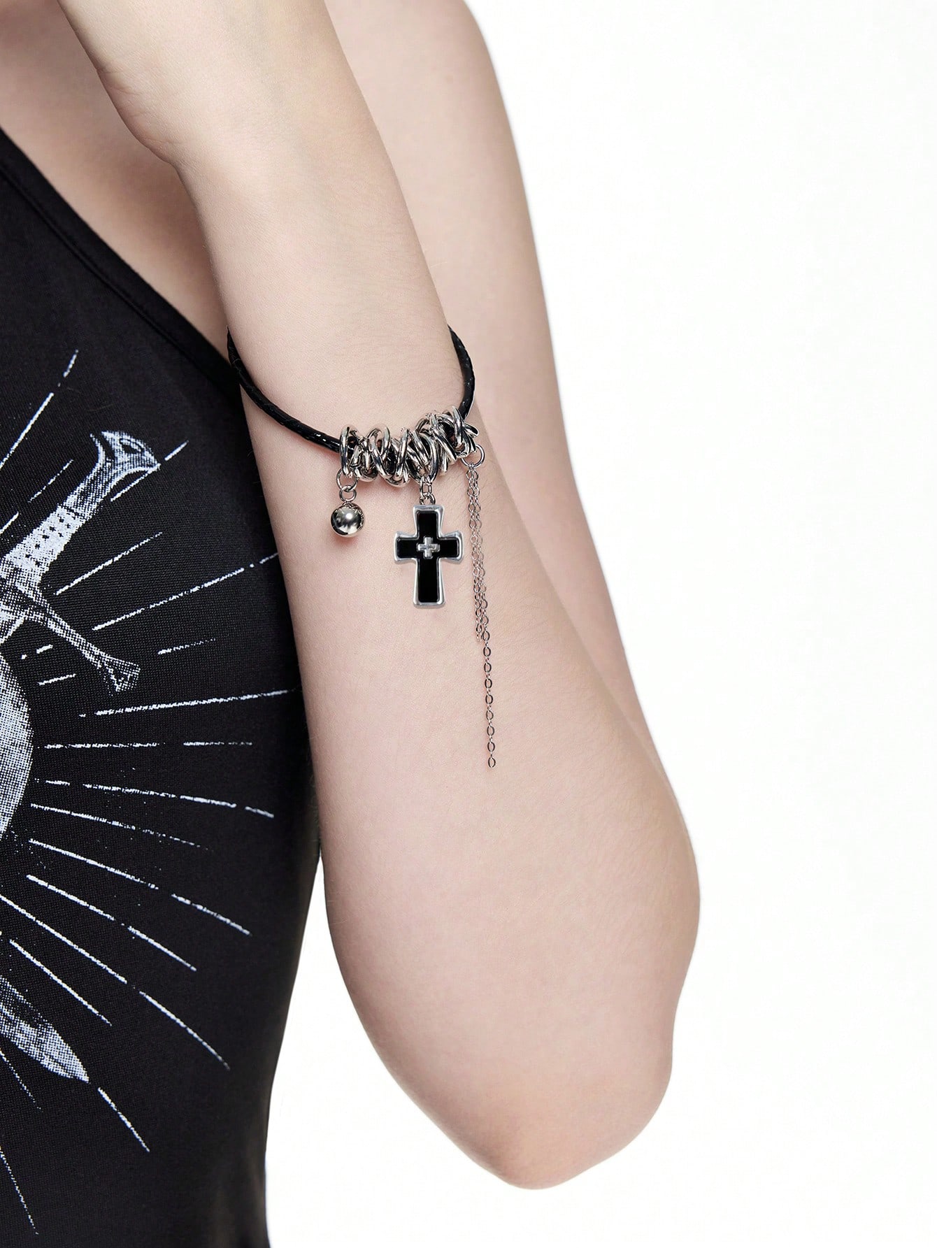 Grunge Punk 1 pieza Pulsera de cordón con borla cruzada asimétrica para mujeres, accesorio de moda de estilo sweet & edgy gótico