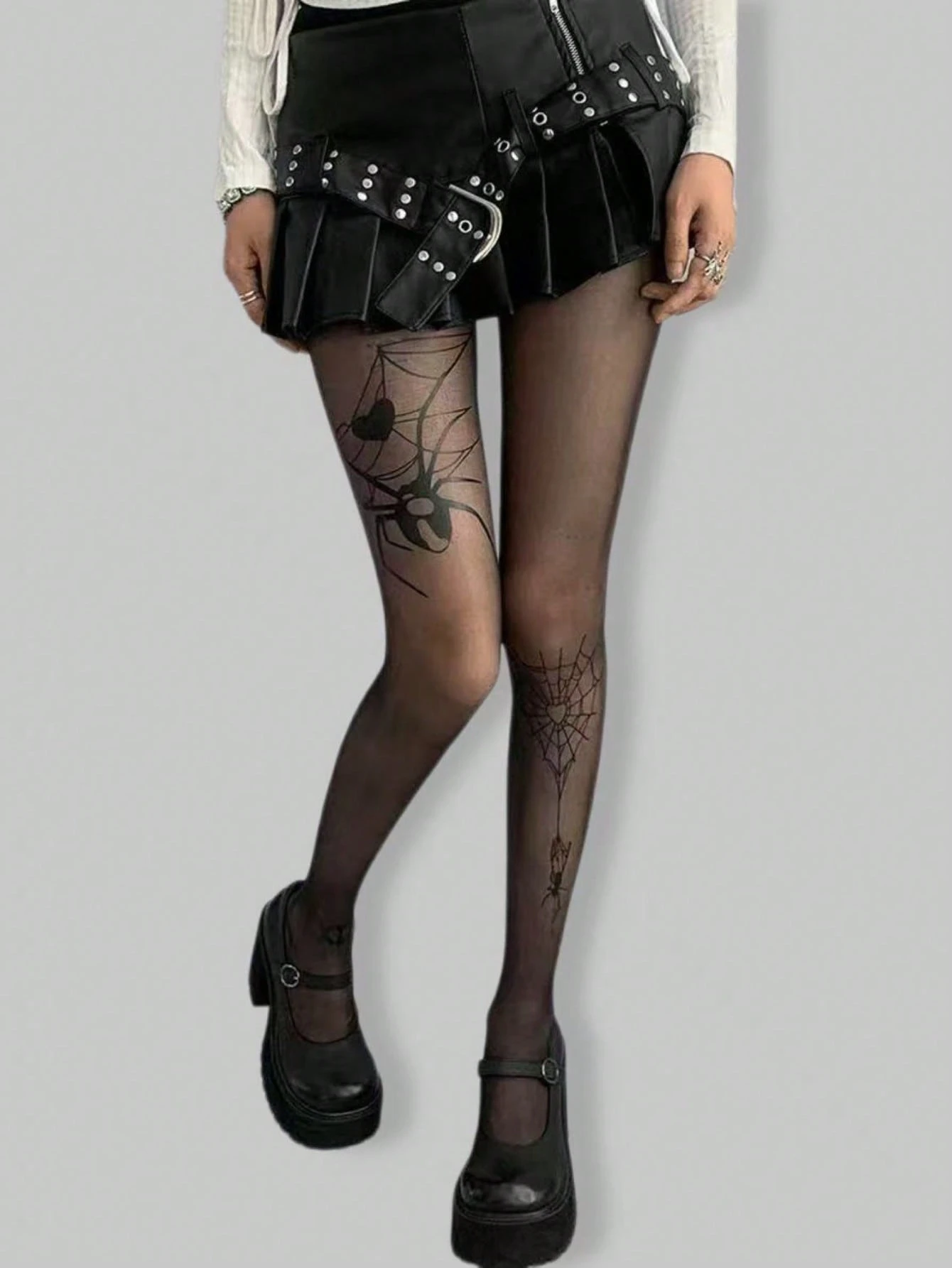 Grunge Punk 1 pieza Medias/Mallas/Leggings negras con diseño de telaraña sexy para mujeres, Halloween