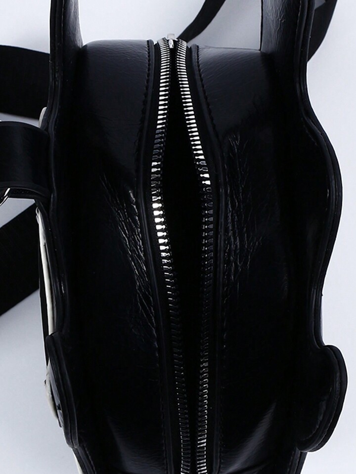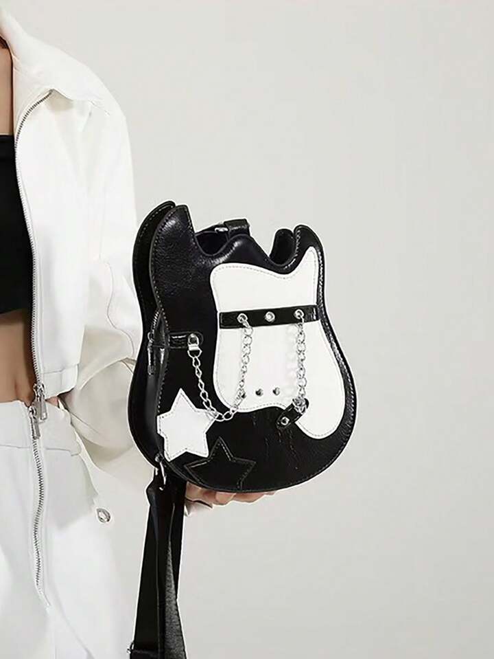 Grunge Punk 1 pieza Bolso de hombro con cadena con patrón de guitarra en blanco y negro y decoración de estrella