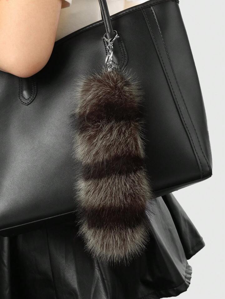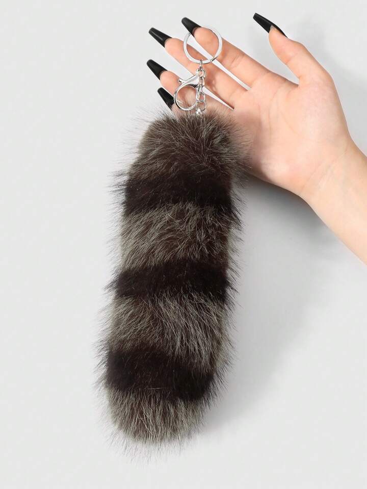 Grunge Punk 1 pieza Lindo llavero con dije de cola de zorro a rayas de alta calidad y estilo de dibujos animados, apto para mujeres, uso diario o regalo para vacaciones