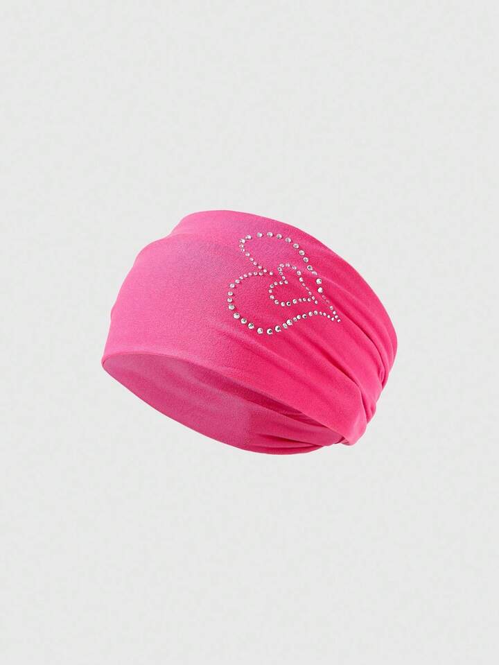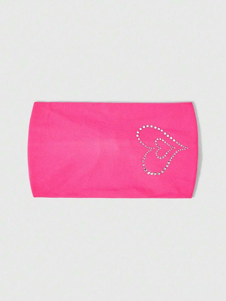 Grunge Punk 1 pieza Diadema sólida rosa pálido linda, Diadema con diseño de corazón de estilo Y2K con rhinestones, accesorio de cabello versátil para uso diario