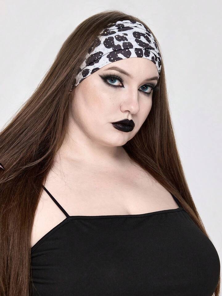 Grunge Punk 1 pieza Diadema con estampado de leopardo con doble láser y cristales de estilo holográfico, diadema elástica con estampado de bloques de color de estilo Y2K, accesorios para el cabello elegantes para uso diario