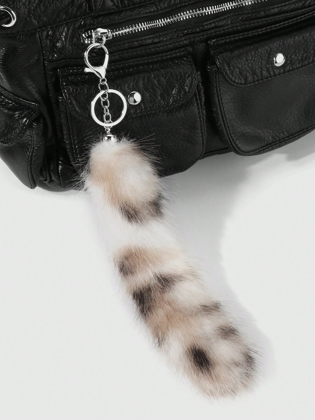 Grunge Punk 1 pieza Accesorio de moda vintage con colgante de cola de animal de peluche con estampado de leopardo, llavero elegante para mujeres, adecuado como uso diario o regalo para vacaciones