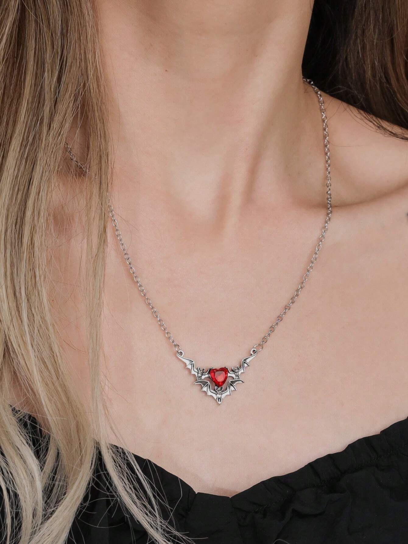 Grunge Punk 1 Pieza Collar Colgante Gótico Con Diseño De Murciélago, Corazón Y Diamantes De Imitación