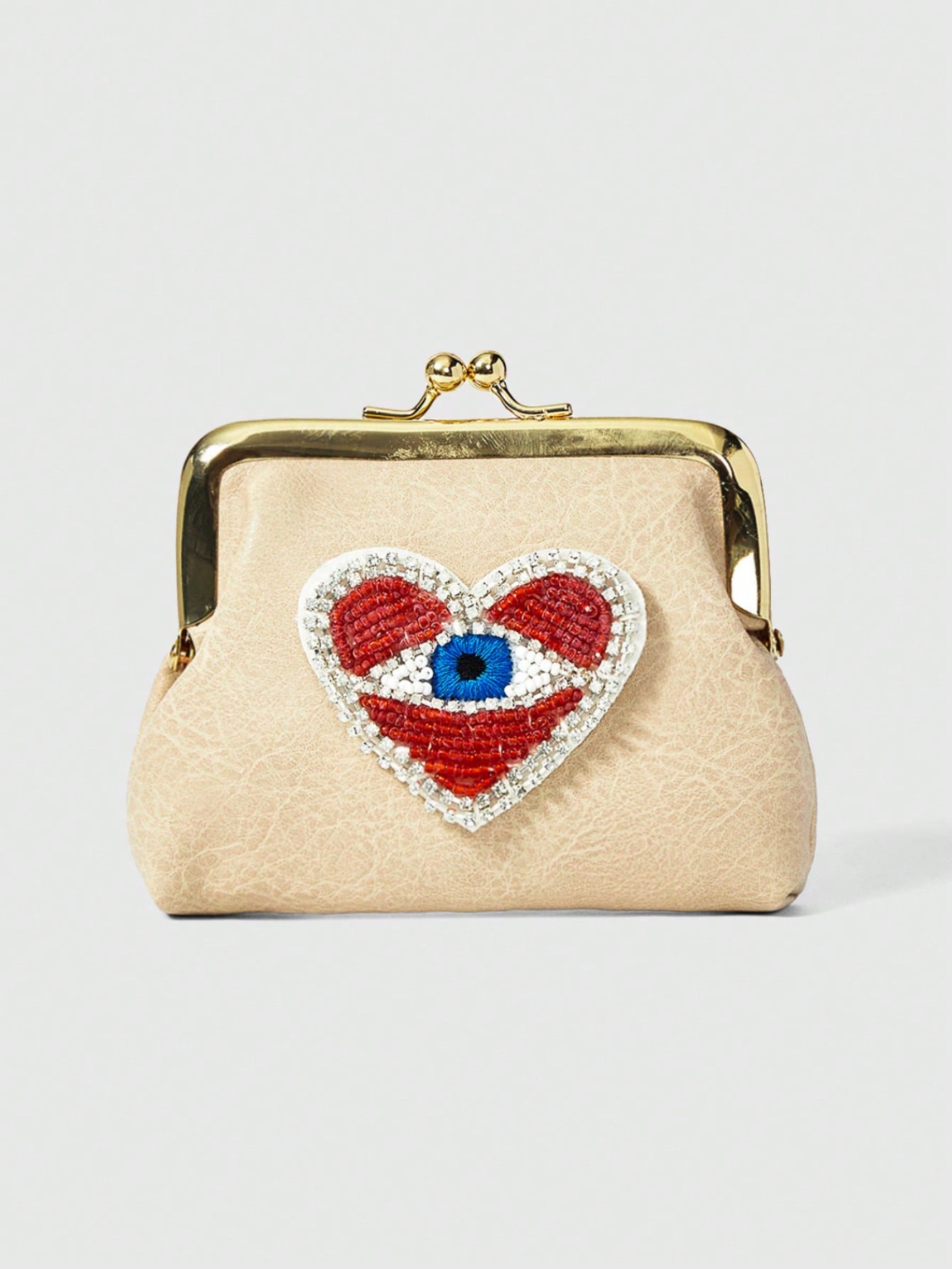 Grunge Punk 1 pieza Billetera corta de cuero sintético con cuentas de ojo azul y corazón rojo, estilo gótico para mujer