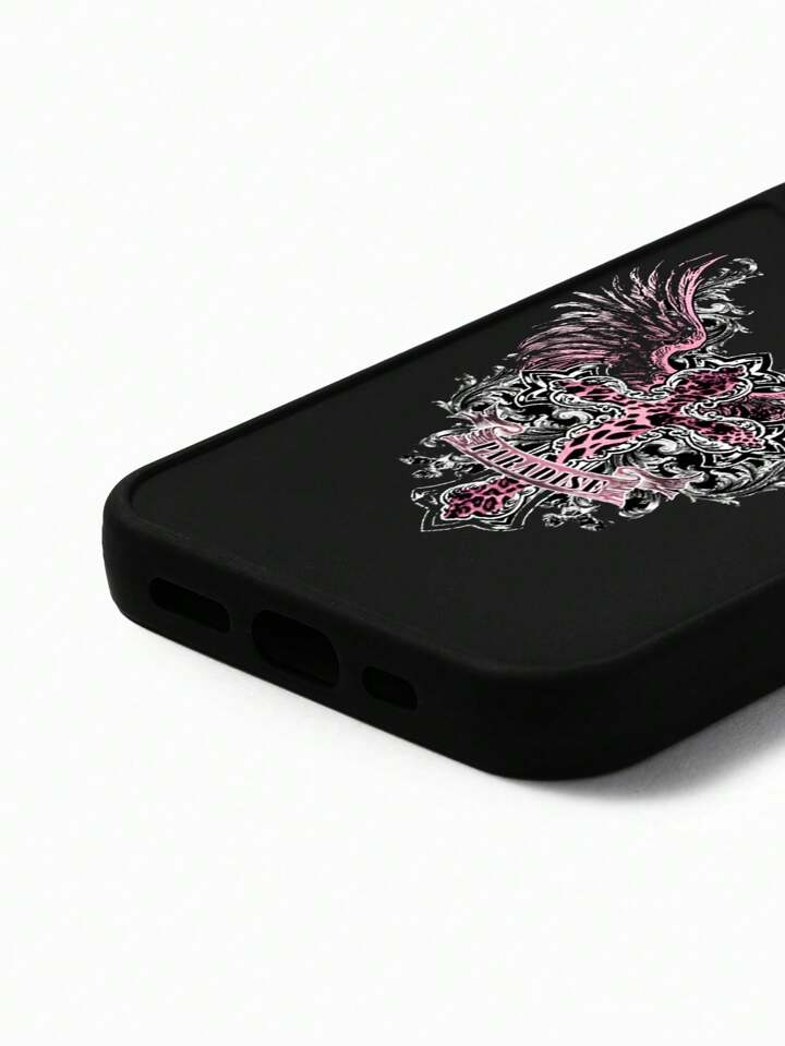 Grunge Punk 1 pieza Funda de teléfono con marco electrochapado negro y patrón de cruz rosa, compatible con 11 12 13 14 15 Pro Max 16