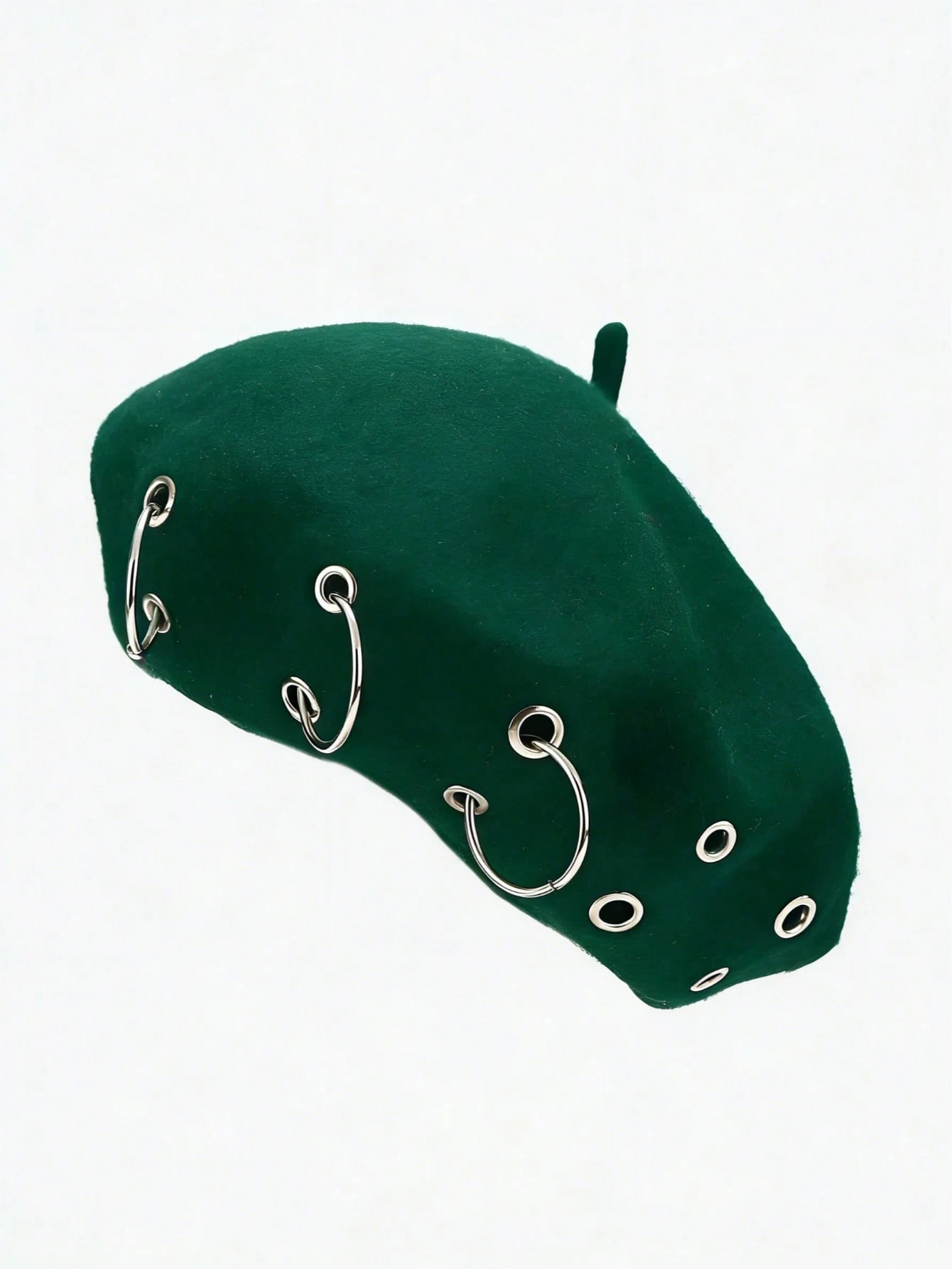 Grunge Punk 1 pieza Boina estilo punk con remaches circulares huecos, Gorra de periódico con colgante redondo Y2K, Artículo de moda personalizado para uso diario