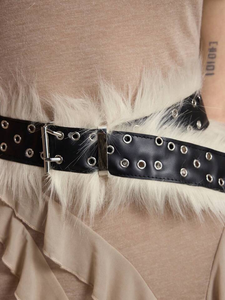 Grunge Punk 1 pieza Cinturón con parches de estilo punk de peluche con múltiples orificios en forma de ojo, accesorio de decoración de cintura de moda Y2K