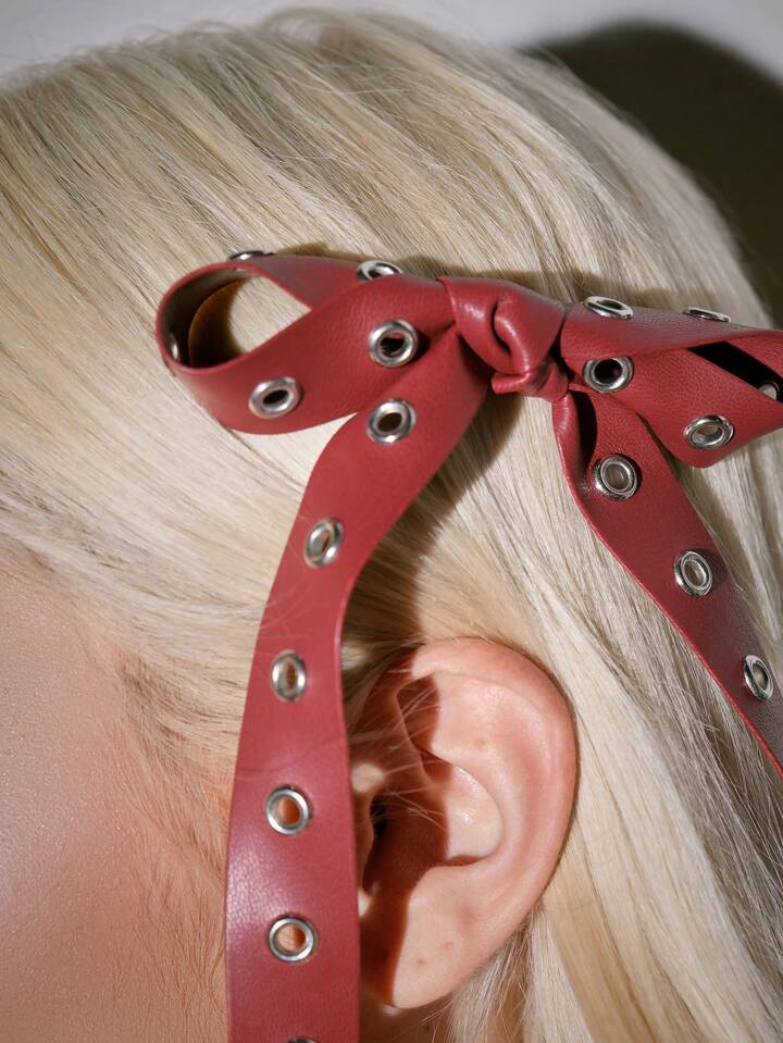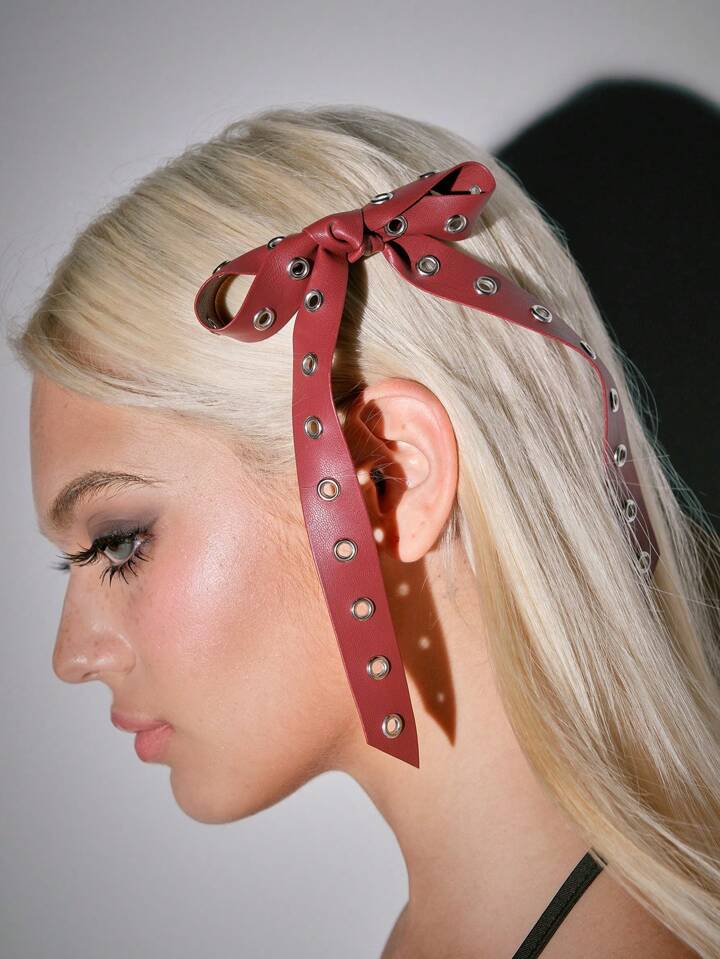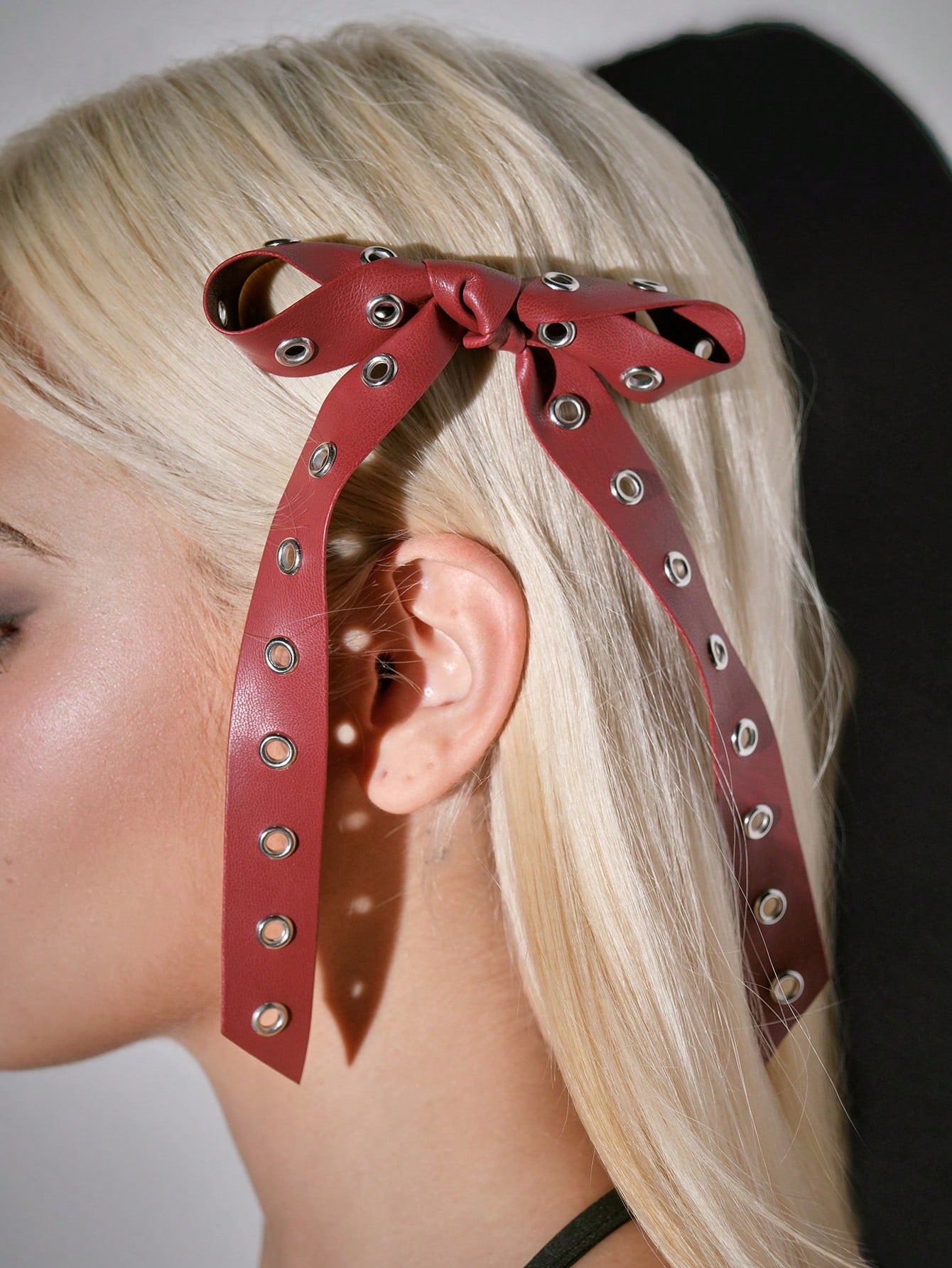 Grunge Punk 1 pieza Clip de pelo con cinta grande de estilo punk color rojo, clip de caimán redondo hueco con remaches de estilo Y2K, diseño único de pinza para el cabello con diadema