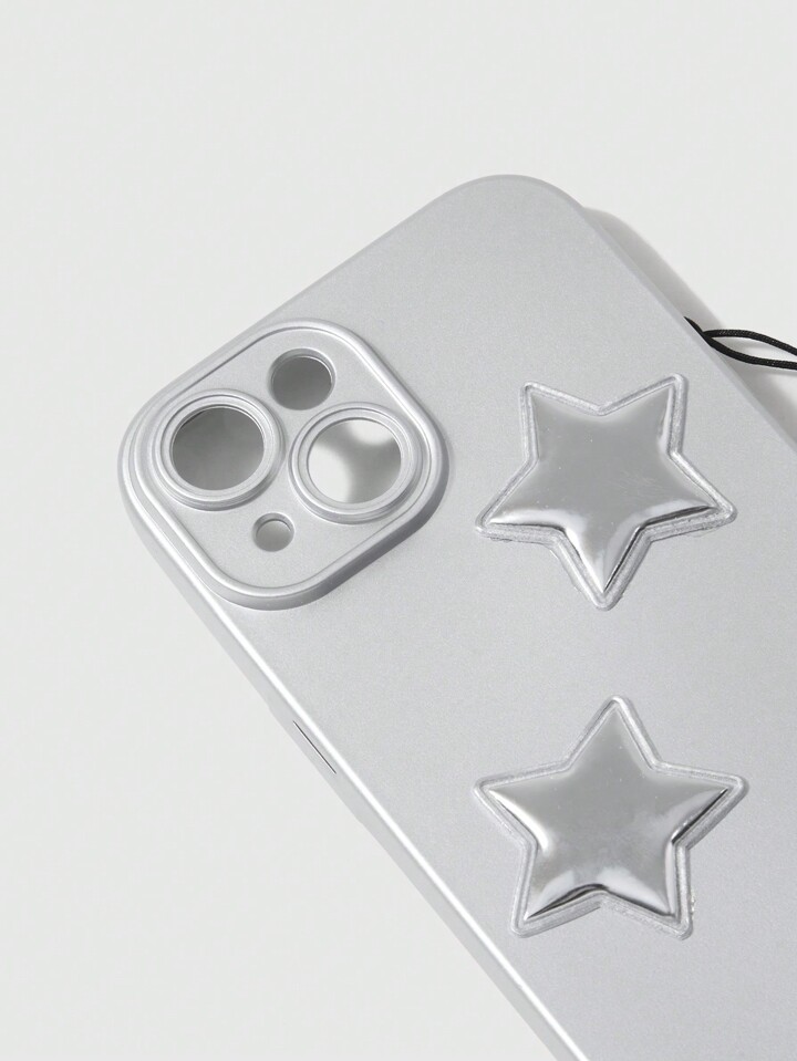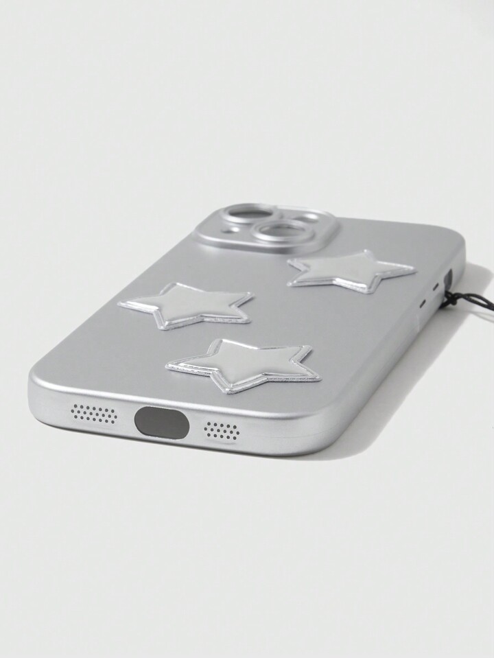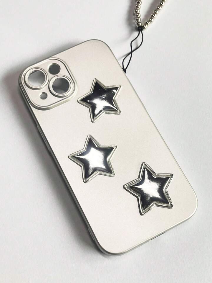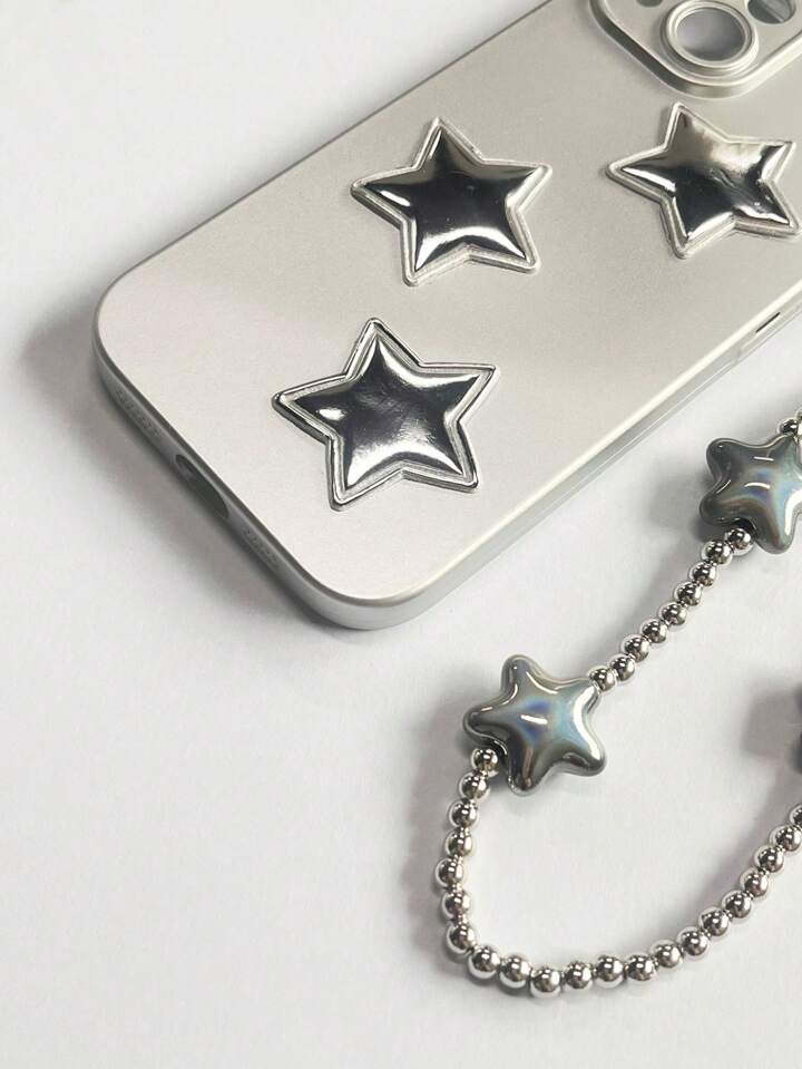 Grunge Punk 1 Pieza Estuche Para Teléfono Punk Plateado Con Diseño De Estrella 3d, Cubierta De Material Tpu De Cobertura Completa Con Cadena De Estrella De Alta Calidad, Compatible Con Apple 13/14/15 Pro Max