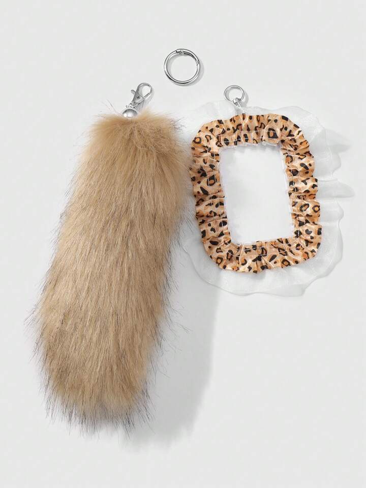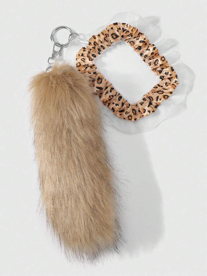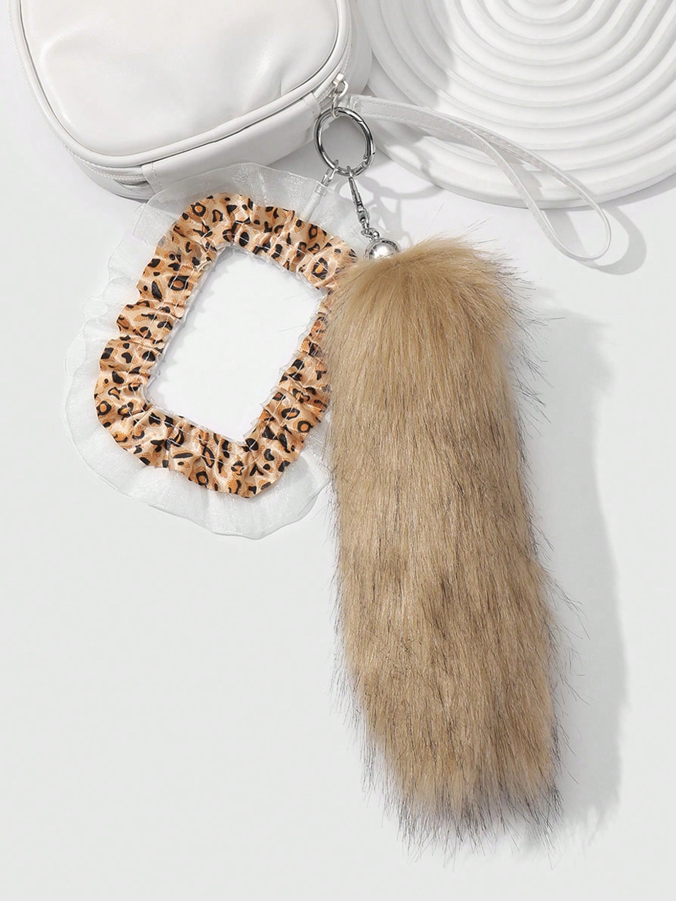 Grunge Punk 1 pieza Soporte para tarjetas de estilo retro y elegante con cola de animal de piel artificial de alta calidad y malla de encaje, adecuado para mujeres y niñas, para uso diario o como regalo para fiestas
