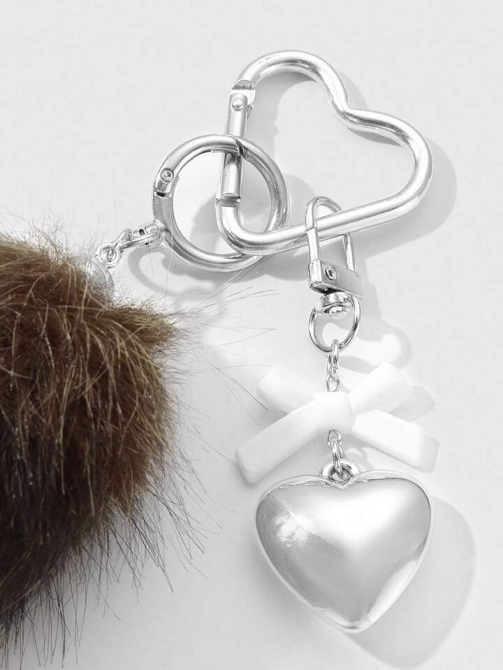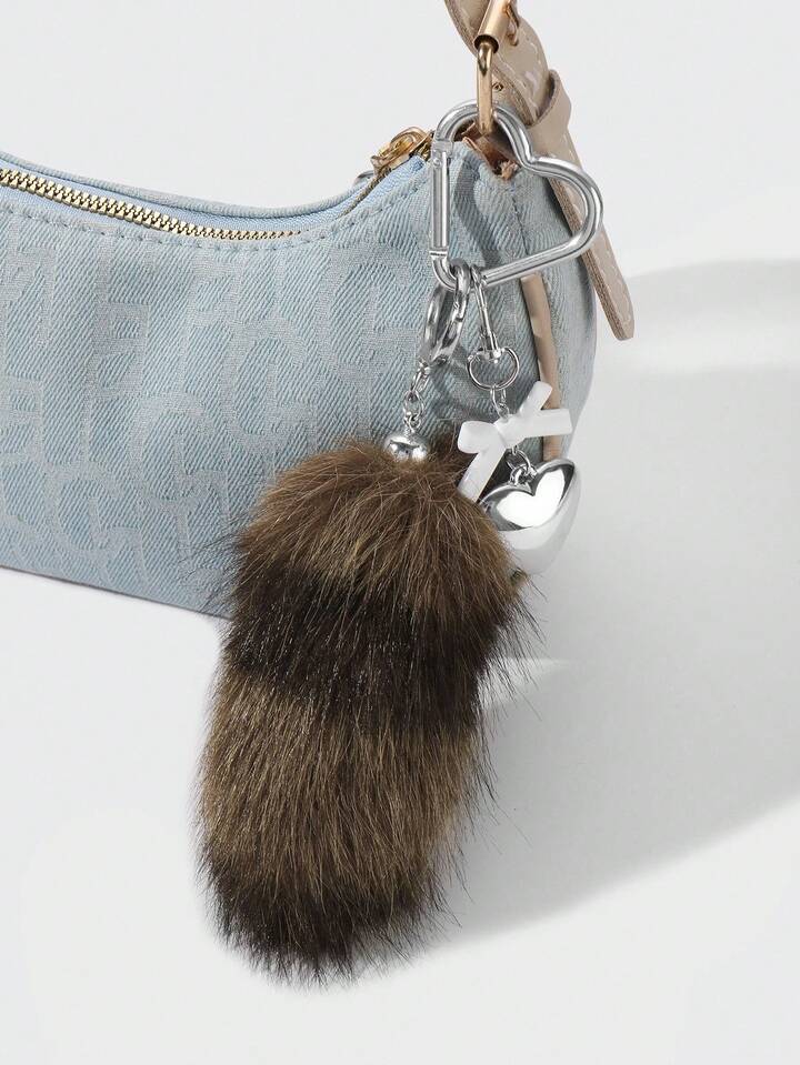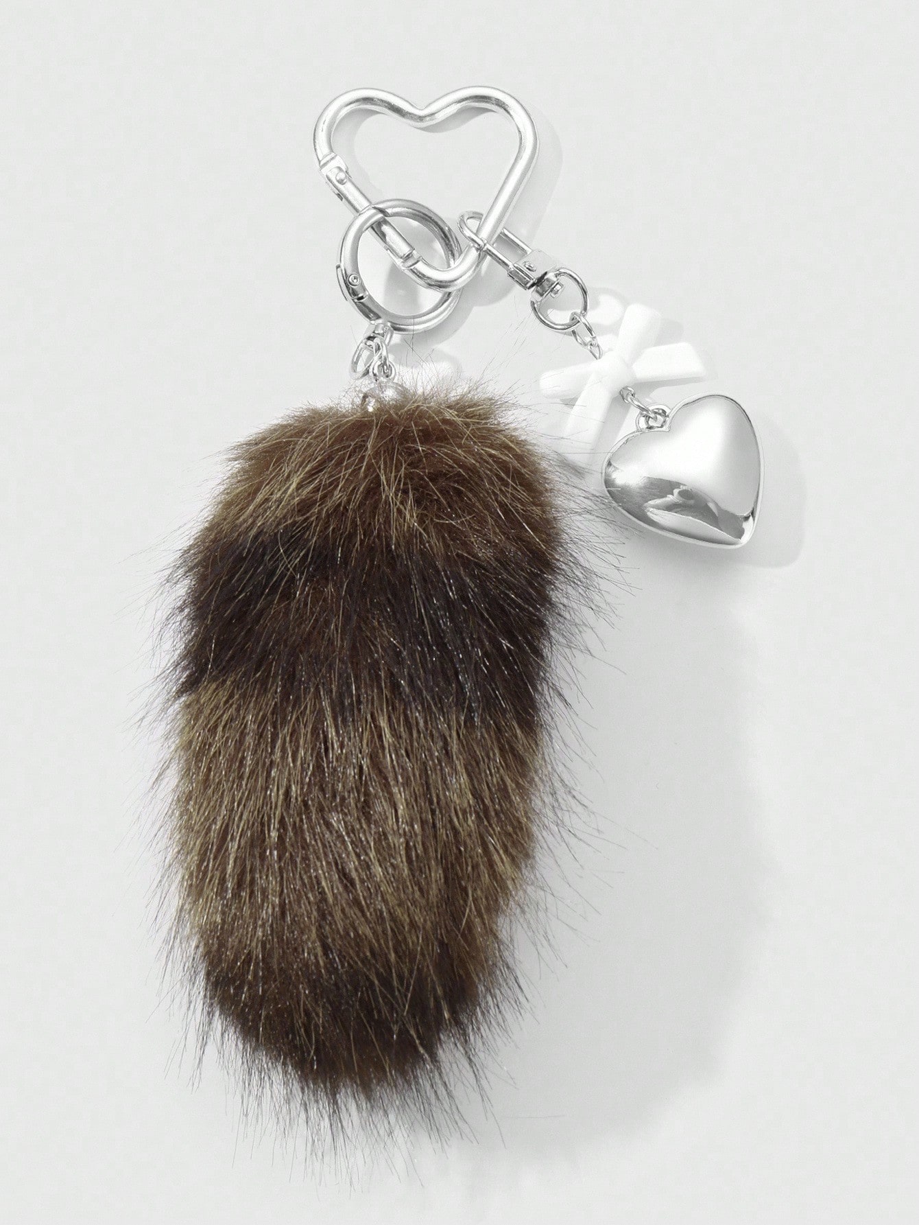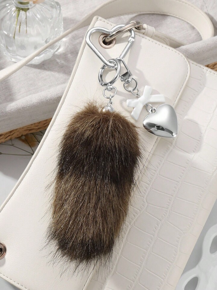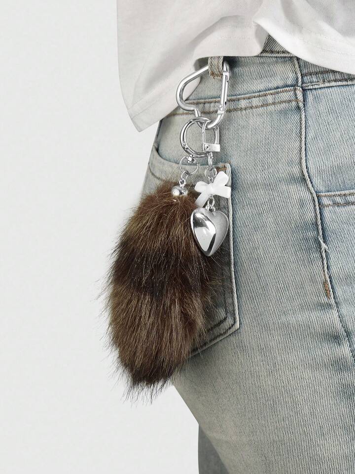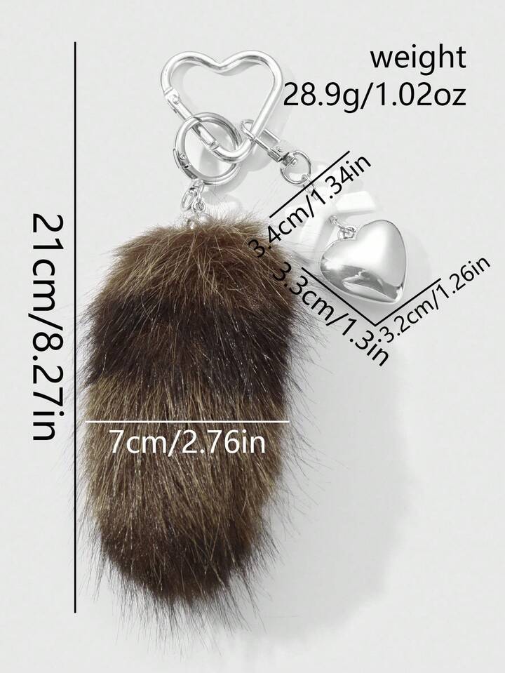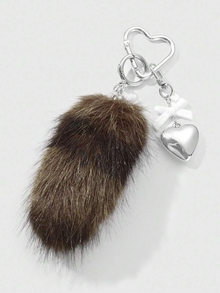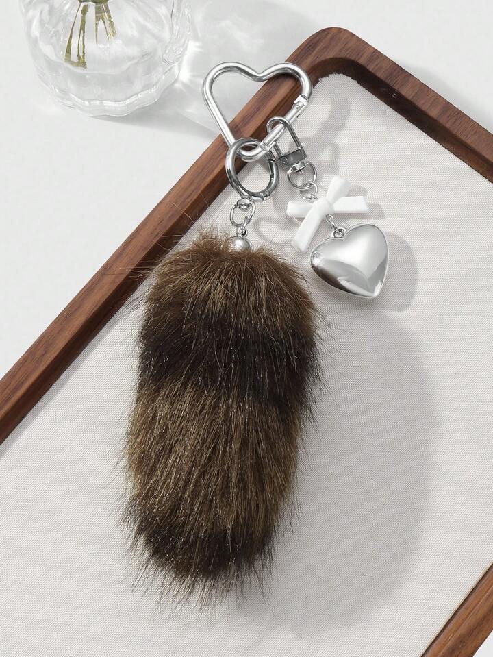 Grunge Punk 1 pieza Llavero con dije de cola de animal de peluche marrón a rayas de estilo retro y elegante, de alta calidad, con lazo de resina en forma de corazón CCB, adecuado para uso diario de mujeres/niñas, regalo para vacaciones