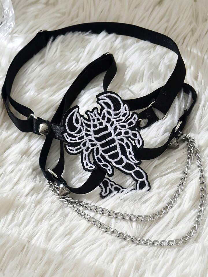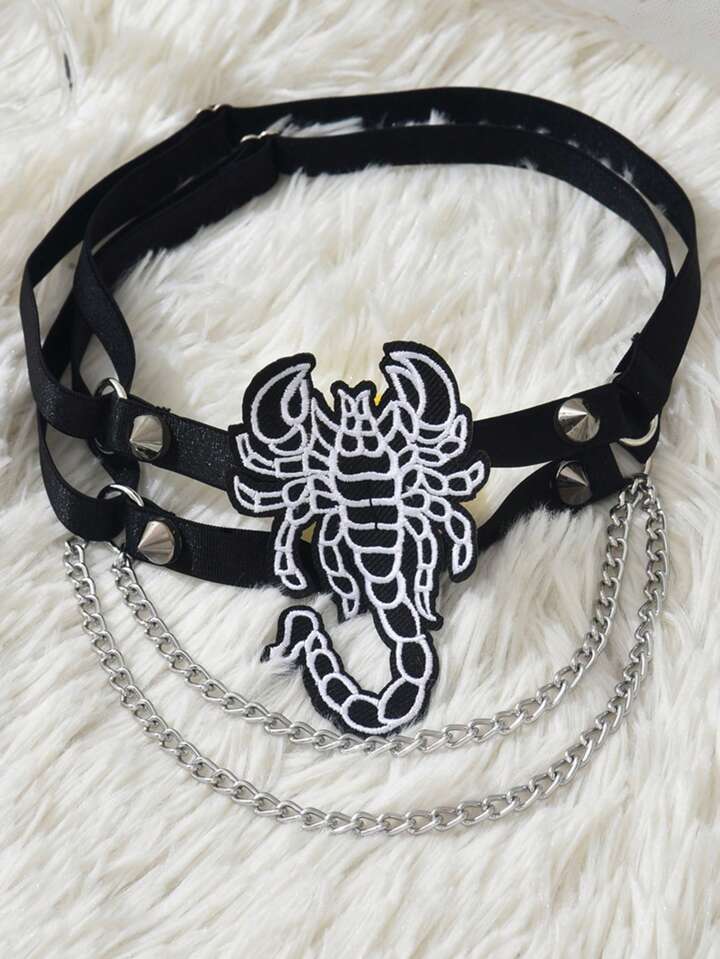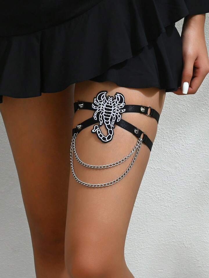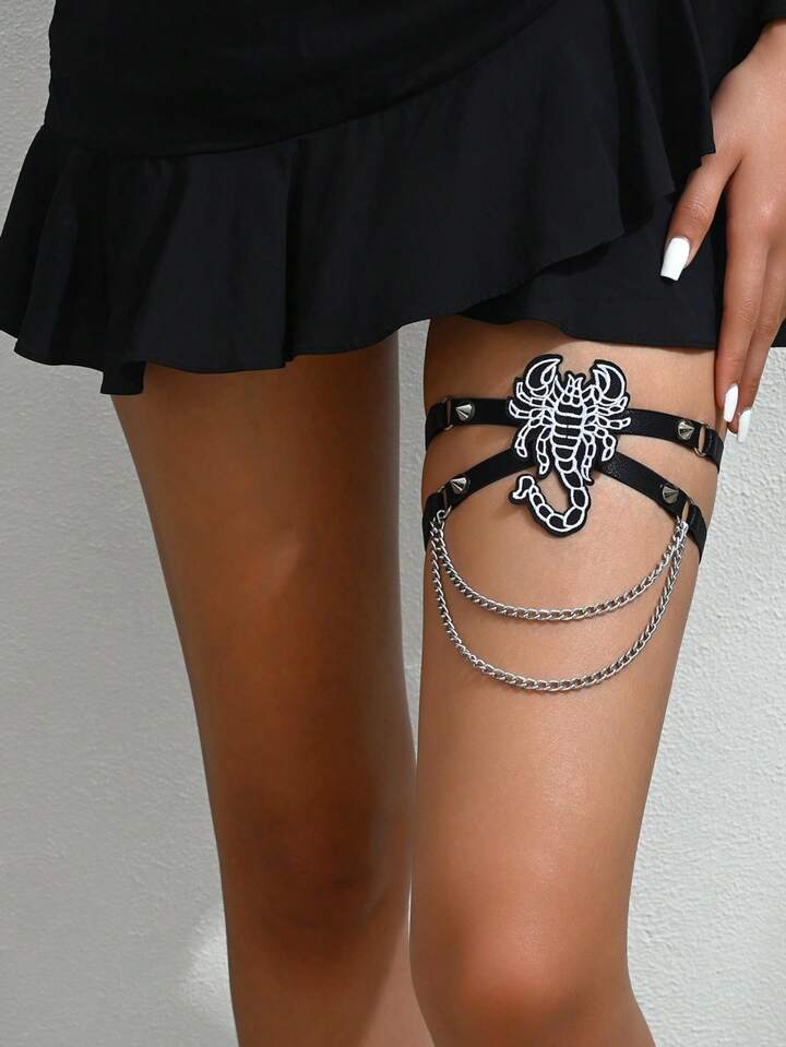 Grunge Punk 1 pieza Banda elástica para la pierna de estilo punk oscuro con tachuelas de escorpión negras para mujer