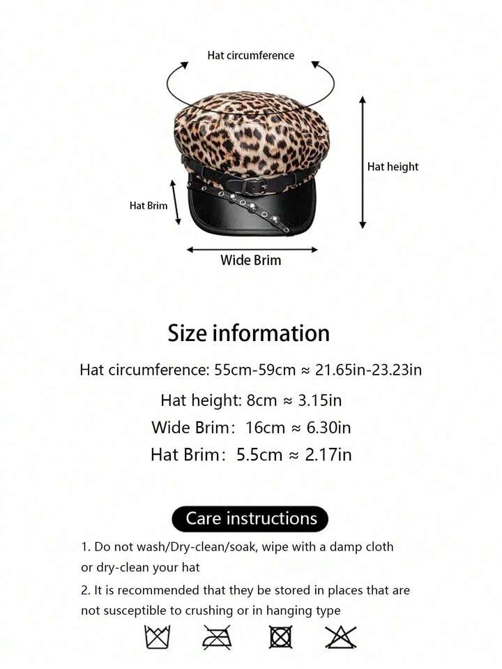 Grunge Punk 1 pieza Boina de mujer estilo punk con estampado de leopardo, araña y remaches, adecuada para uso diario, fiesta u Halloween