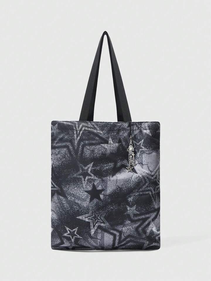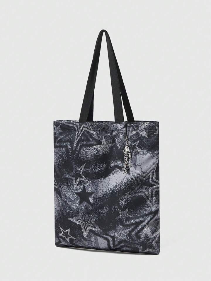 Grunge Punk 1 pieza Bolso de mano de mujer con estampado de estrellas y decoración con dije de estrella y luna