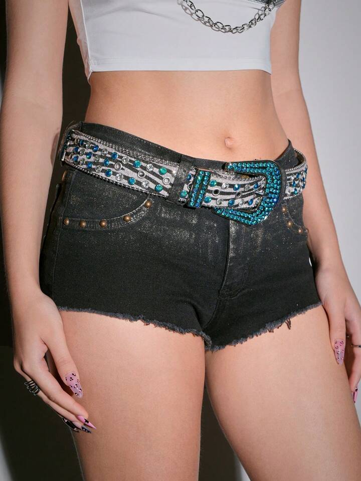 Grunge Punk 1 pieza Cinturón/Cincher de cintura con incrustaciones de rhinestone y rayas de cebra para mujer