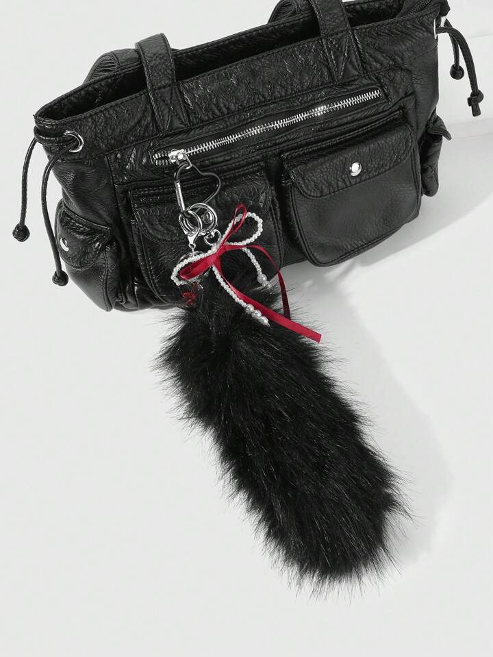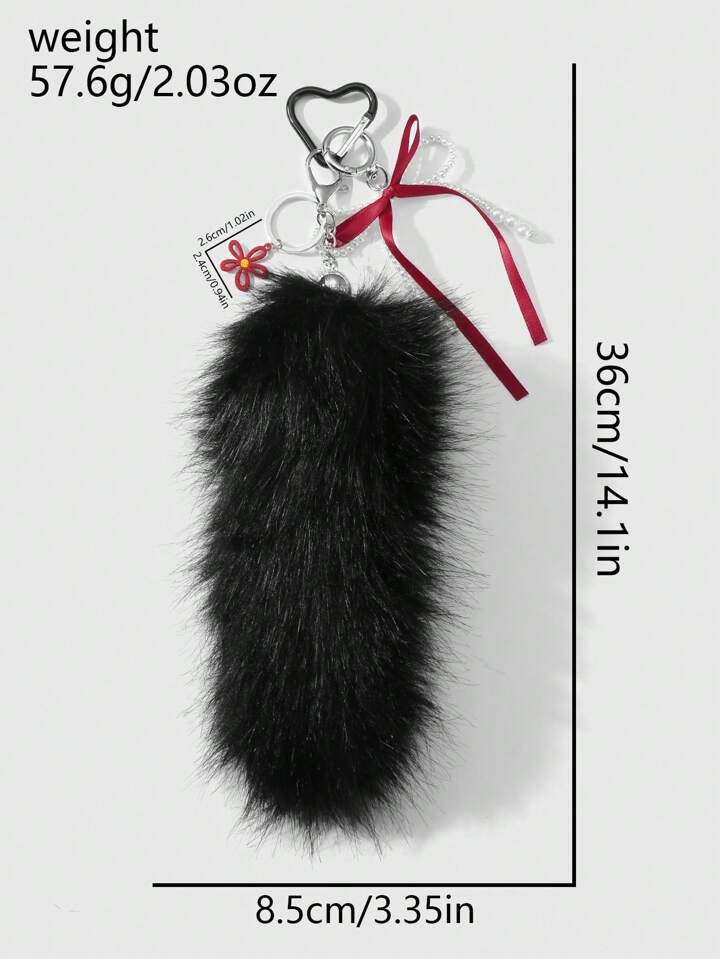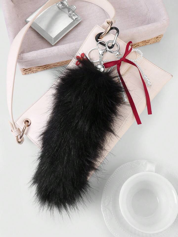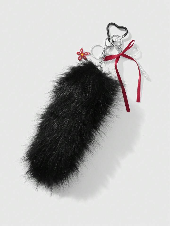 Grunge Punk 1 pieza Llavero con dije de flor hueca de peluche negro falso con moño de cinta roja, perlas blancas y estilo gótico oscuro personalizado, accesorio elegante Y2K adecuado para uso diario de mujeres/niñas, regalo para vacaciones