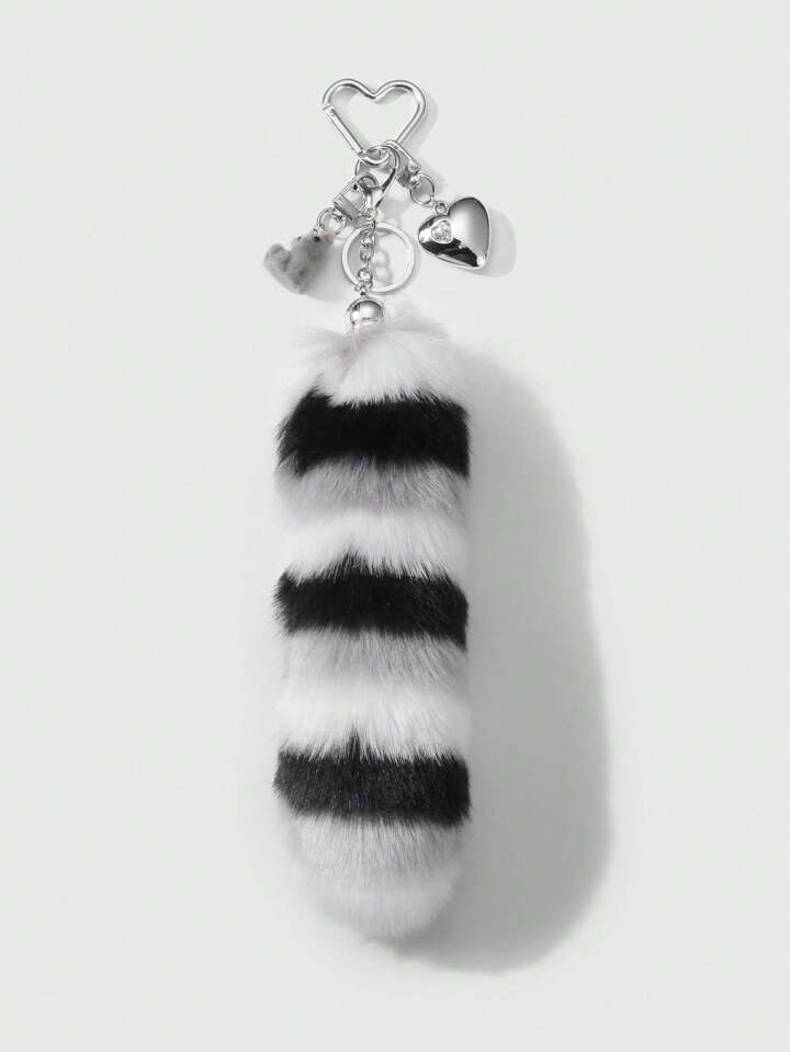 Grunge Punk 1 pieza Colgante de estilo gótico lujoso y elegante con forma de corazón de gato con cristales de strass de plata CCB, llavero y dije para bolso con cola de animal de peluche de colores, adecuado para mujeres, uso diario o como regalo