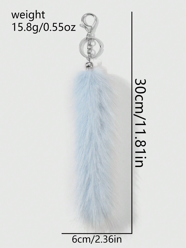 Grunge Punk 1 pieza Llavero y llavero de cola de animal de peluche azul claro de estilo minimalista de lujo retro Y2K, accesorio de moda, adecuado para mujeres, excelente para uso diario o como regalo de vacaciones