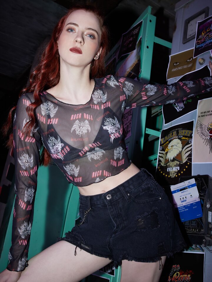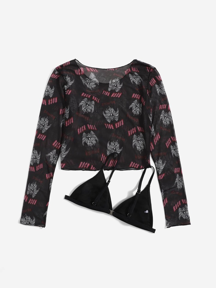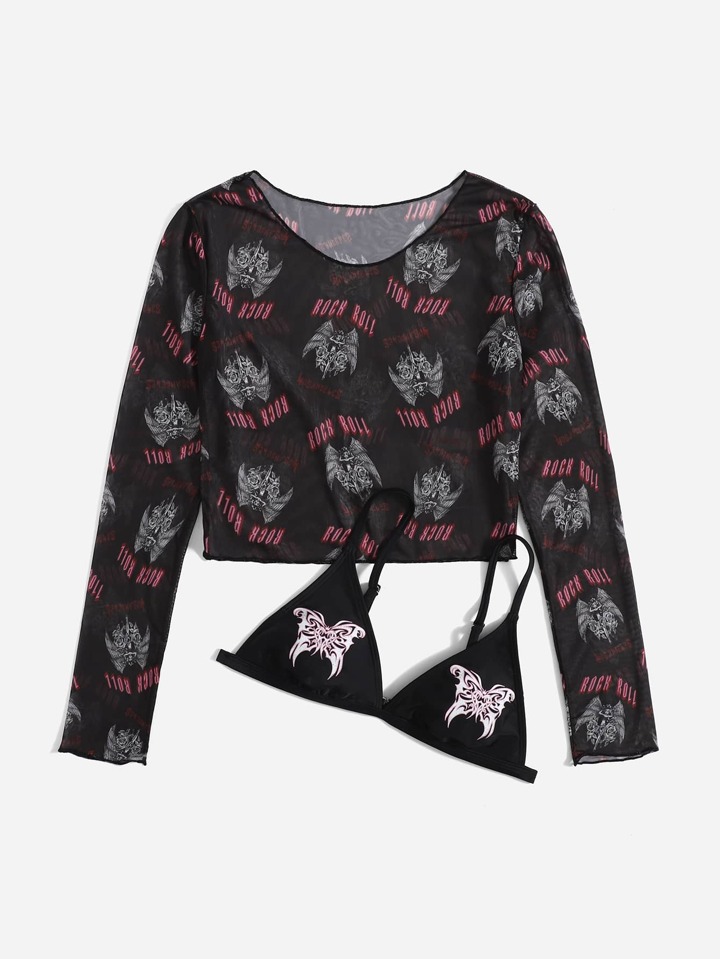 Grunge Punk 2 piezas con estampado de mariposa Top bikini con cover up Top