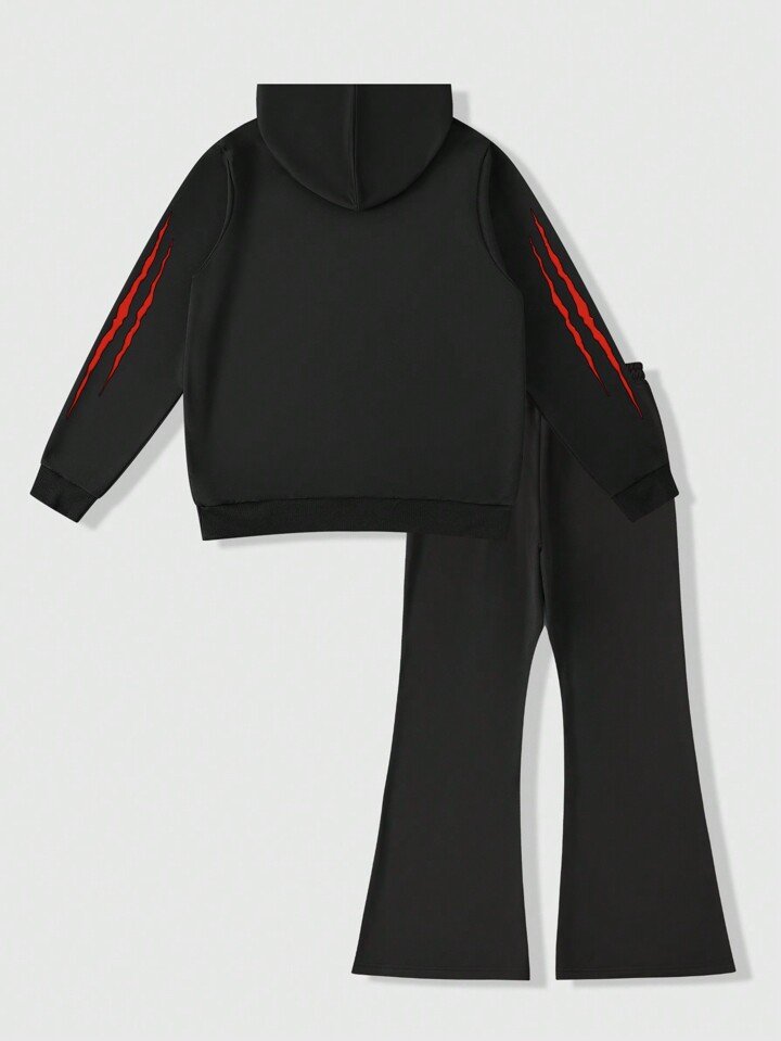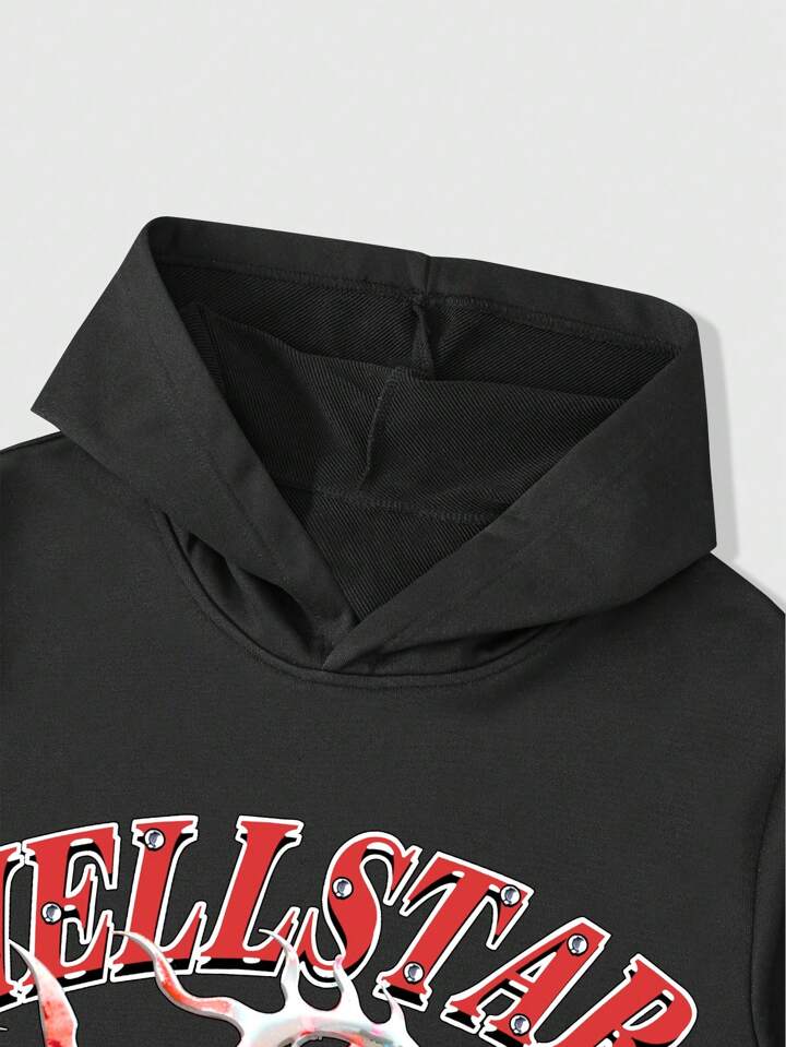 Grunge Punk 2 piezas Conjunto de sudadera con capucha de manga larga y pantalón de chándal con estampado de lema y calavera casual para hombre, otoño e invierno