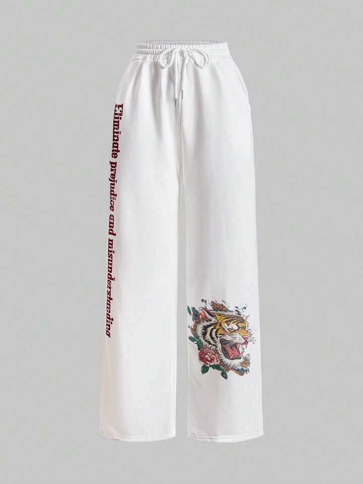 Grunge Punk Set de 2 piezas con cuello profundo drapeado, estampado de flores y cabeza de tigre con rhinestones en estilo retro Y2K para mujeres