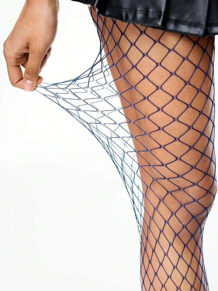 Grunge Punk 3 pares de medias/pantimedia/leggings/mallas elásticas azules de red para mujer