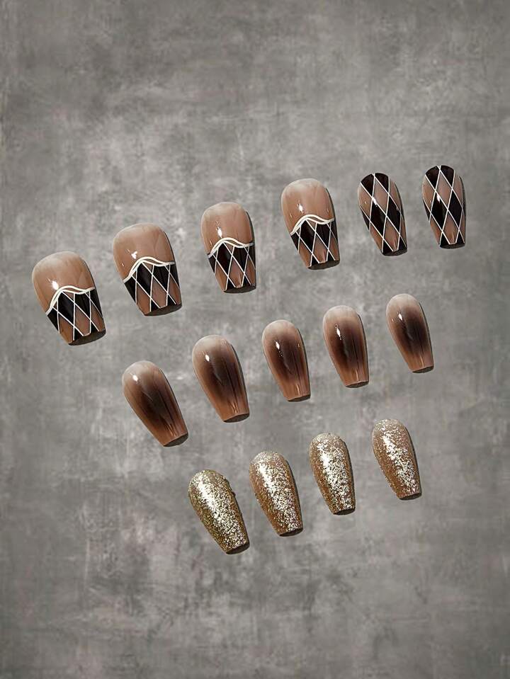 Grunge Punk 30 piezas largo cuadrado de cuadros Uña postiza & 1 pieza lima de uñas & 1 hoja cinta