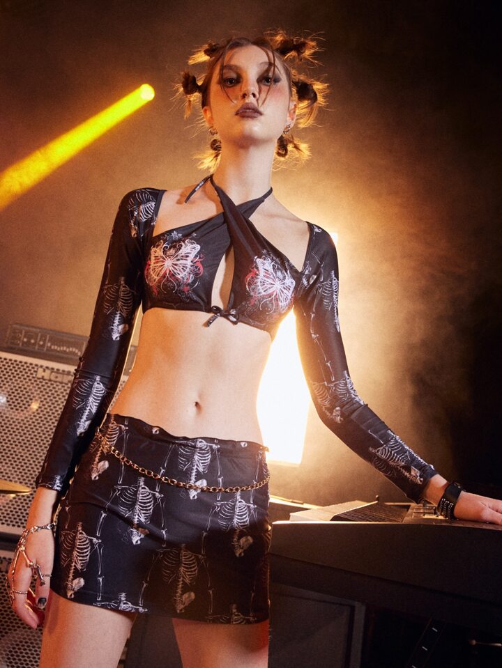 Grunge Punk Conjunto de 4 Bikinis gráficos de mariposa