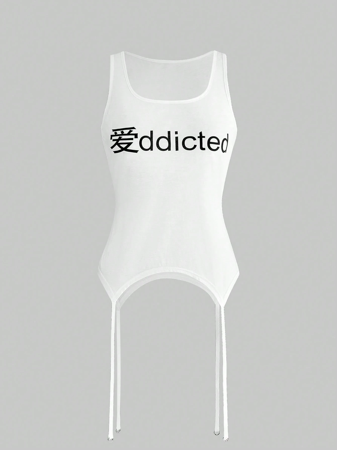 Grunge Punk Camiseta de mujer asimétrica con estampado de letra Abby