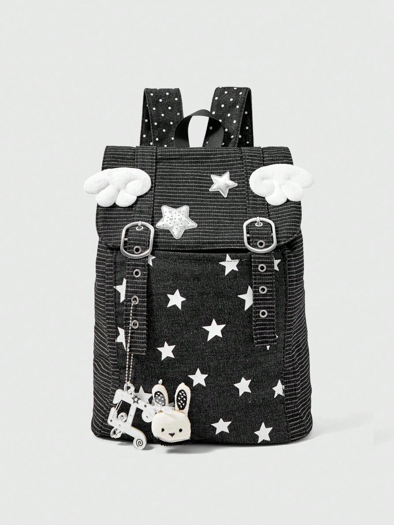 Grunge Punk Mochila con diseño de notas musicales y alas para el regreso a la escuela