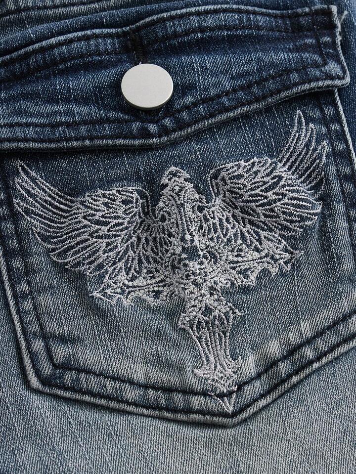Grunge Punk Jeans acampanados de alta elasticidad y talla grande para mujer, con patrón de bordado punk casual, para la escuela