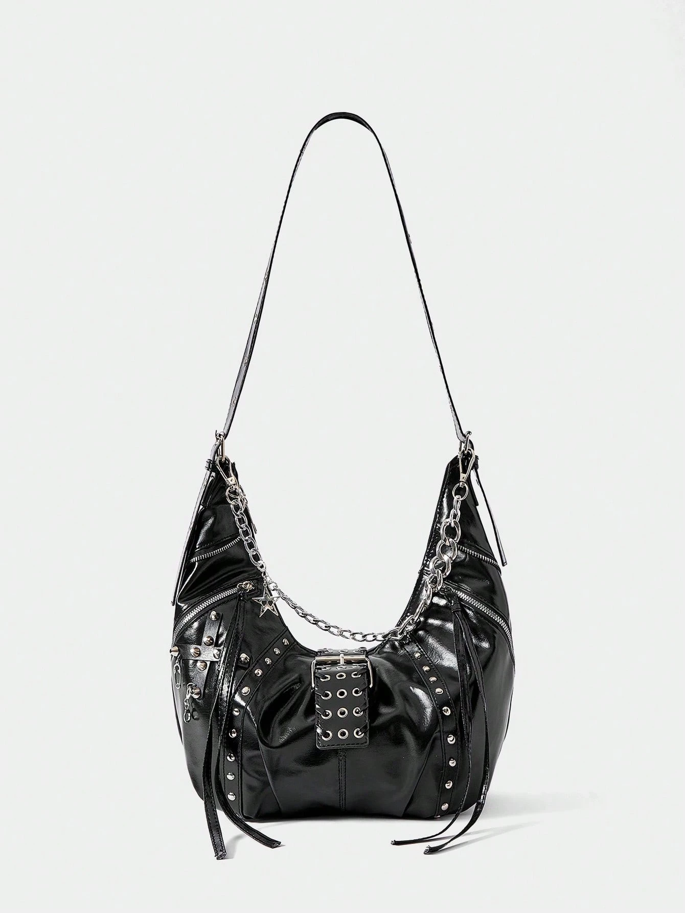 Grunge Punk Bolsa grande de capacidad para ravioles con correa de hombro colgante