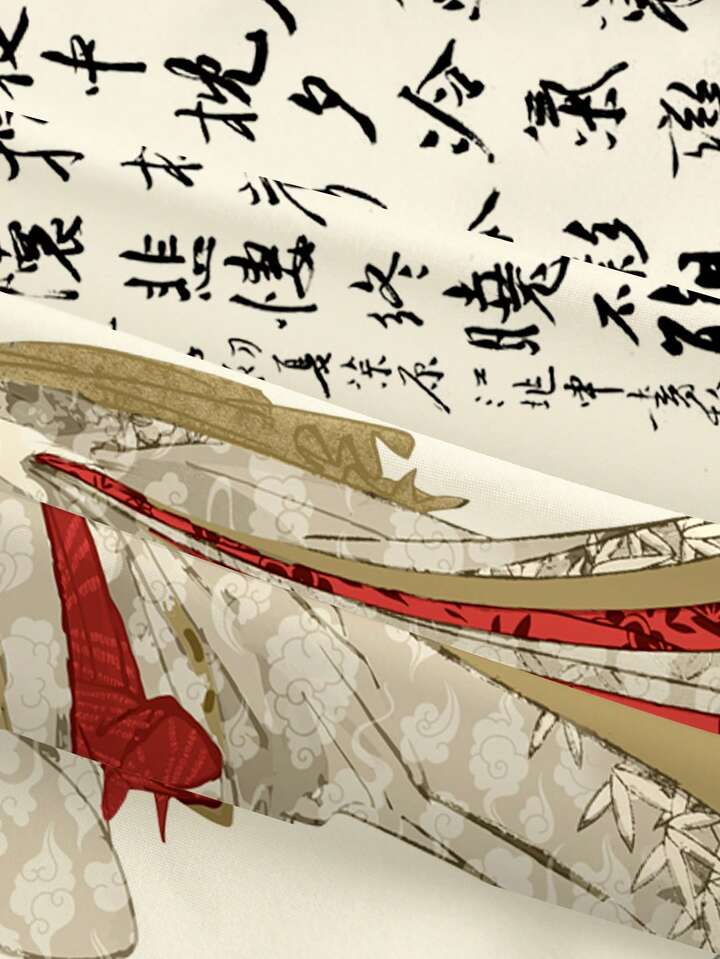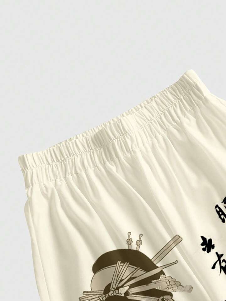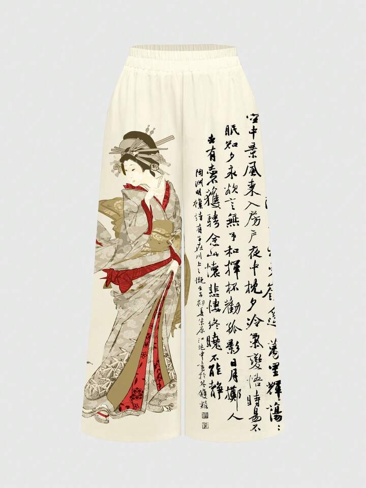 Grunge Punk Pantalones de pierna ancha con estampado de figura y caligrafía estilo chino para mujeres