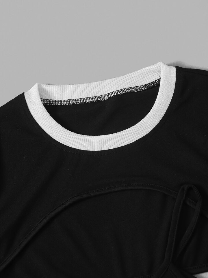Grunge Punk unido en contraste Top súper corto & con estampado de esqueleto Cami