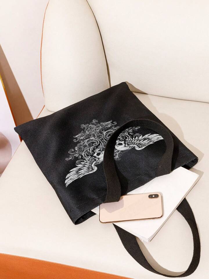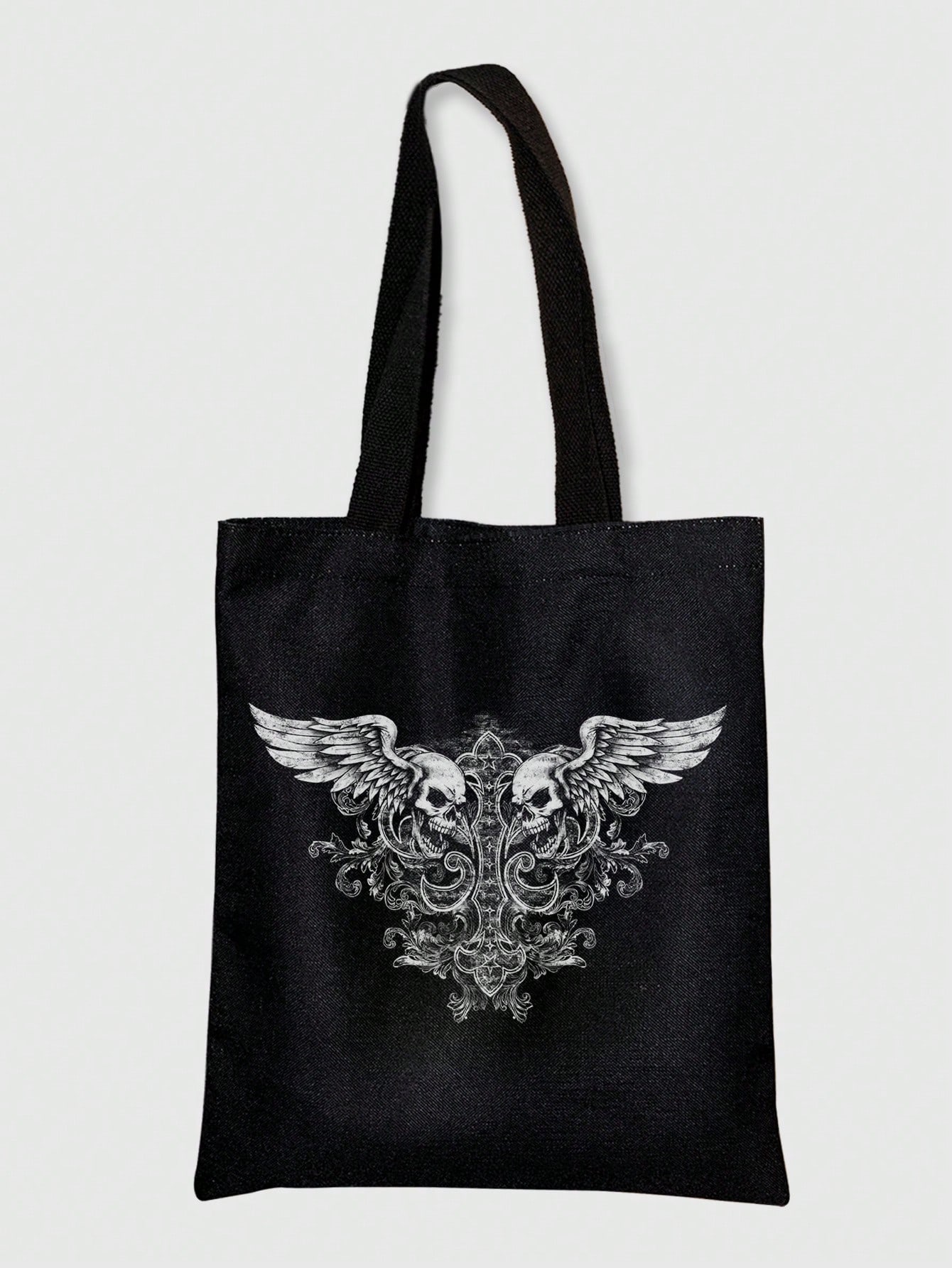 Grunge Punk Bolso de hombro creativo de cráneo doble faz con estampado de lona